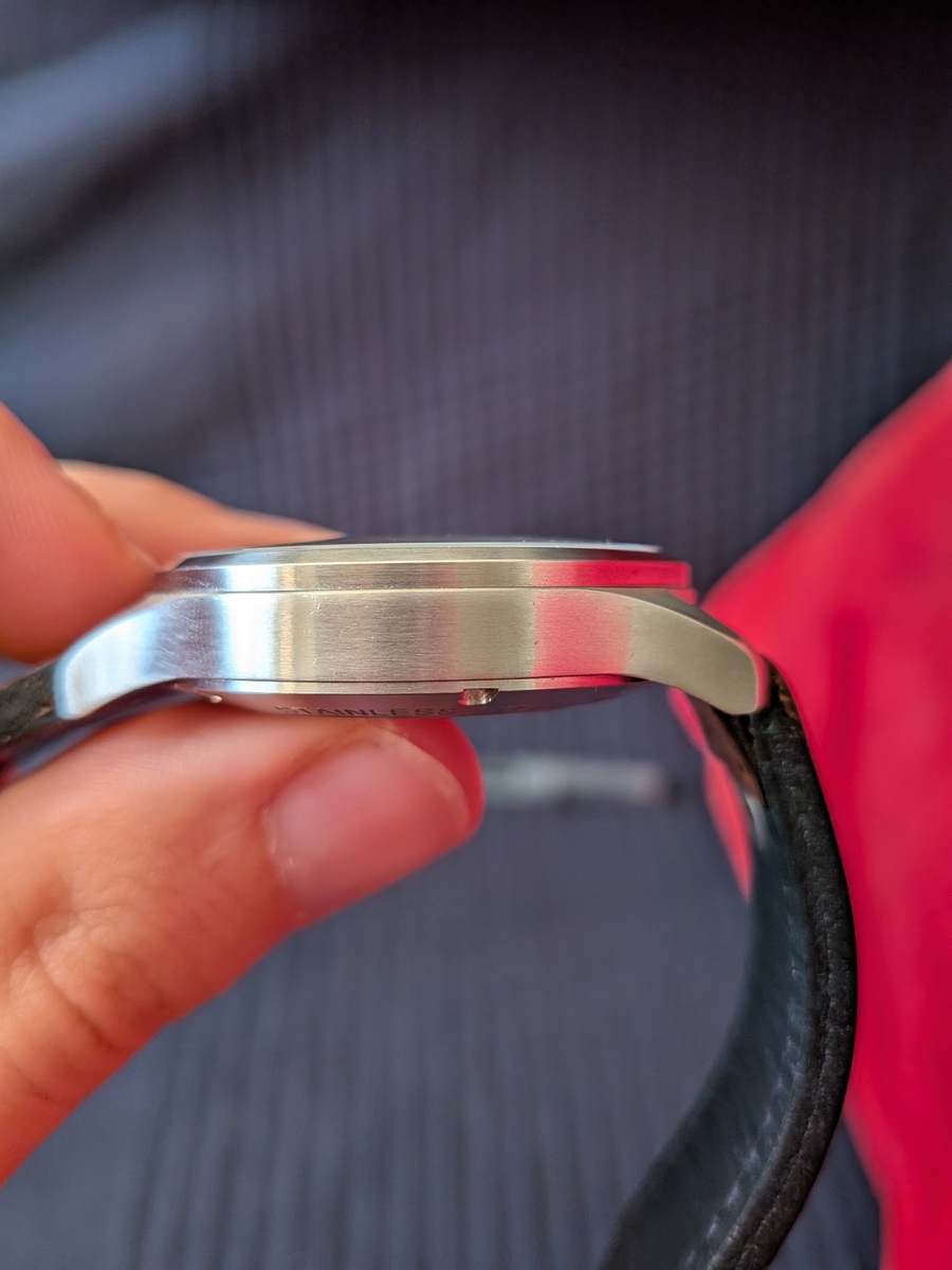 Odjąłem z tego powodu jeden punkt oceny wizualnej, jednak moim zdaniem nie stanowi to żadnego problemu, chyba, że ktoś ma nadgarstek >20 cm i lubi nosić takie małe zegarki.