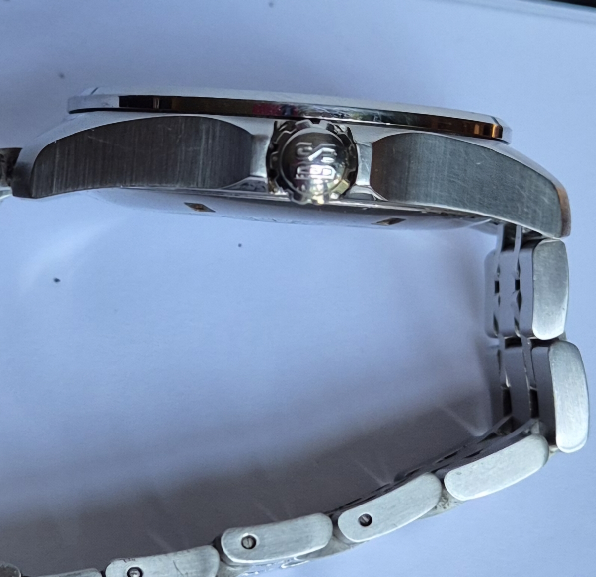 Zegarek w stanie 8/10; ryska z boku koperty, na spodniej stronie koperty ryski przy teleskopach od zmiany bransolety, niewielkie znaki na lunecie, szafir czysty.