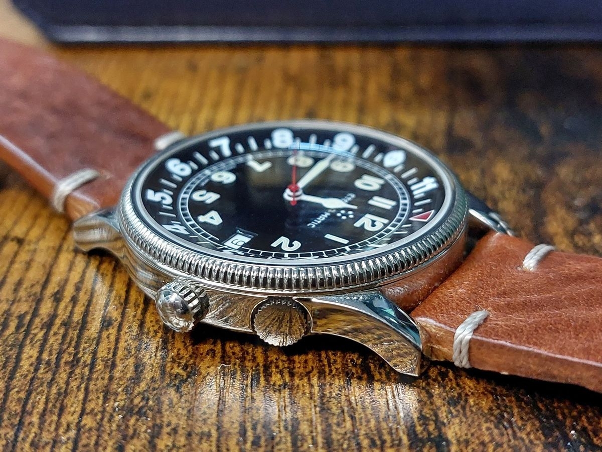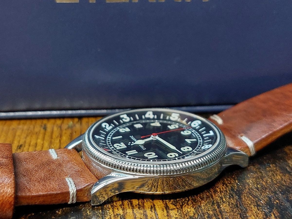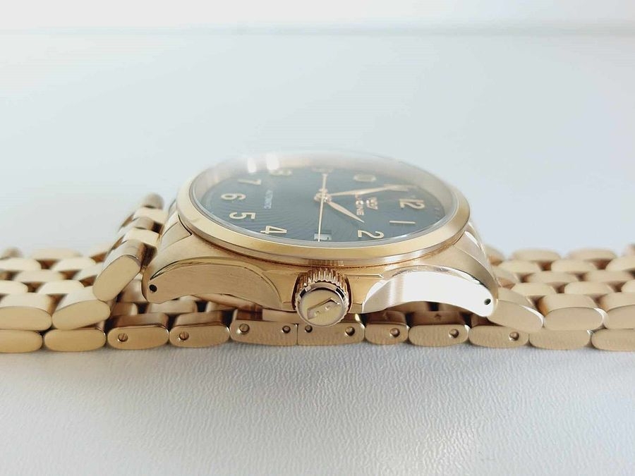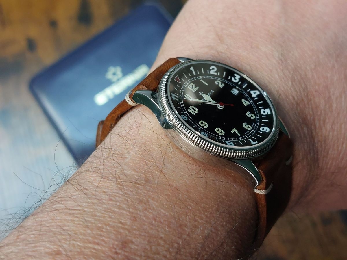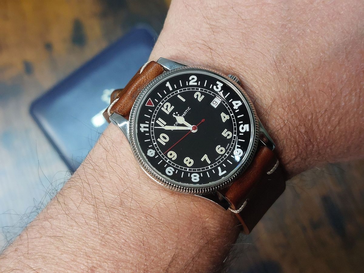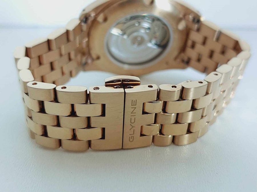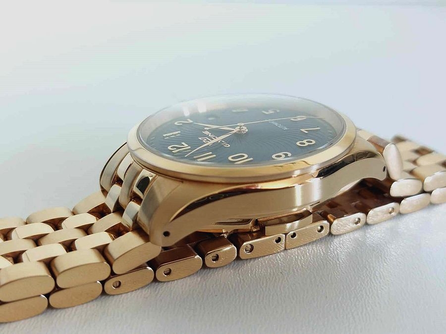 Z_bych 2025 #1 Napisano 18 Października Dwa super fajne i nieduże 🙂 ETERNA MATIC Les Historiques Air Force 1 ref. 8405.41 3600 zł + wysyłka Stan 8/10 W 2000 r. Eterna wprowadziła model mocno nawiązujący do swoich dawnych zegarków dla pilotów. Air Force I w klasycznej linii Les Historiqus to zegarek w rozmiarze 37 mm (bez koronki) i mający jedynie 9 mm grubości. Warto zwrócić uwagę na grubość zegarka, bo w środku kopery został zamknięty automatyczny mechanizm ETA z komplikacją daty i dość wysokim wewnętrznym bezelem. Na uwagę zasługuje wyjątkowa czytelność zegarka a fajnym smaczkiem jest ciemna czerwień sekundnika i trójkąta na bezelu. Bezel, jak przystoi na zgarki lotnicze, obraca się w obie strony. Koronka od bezela jest dyskretnie schowana w kopertę, praktycznie się z nią licuje. Zegarek jest używany, ale w pięknym stanie zachowania, na polerowanych bokach jedynie minimalne, „mankietowe” ślady używania. Szkło i dekielek czyste, więc jak na 25-cio letni zegarek to wyjątkowy egzemplarz. W komplecie jest także pudełko i oryginalny, ale podniszczony pasek, który został zastąpiony świetnym paskiem z naturalnej skóry w stylu pasków do pilotów. Do tego paska została założona oryginalna klamerka. Mechanicznie zegarek jest w perfekcyjnym stanie, na równym, bardzo ładnym chodzie, miło posłuchać. Specyfikacja: Marka: Eterna (Szwajcaria) – sprzed przejęcia Model: Eterna Matic Air Force 1 Linia: Les Historiques Ref.: 8405.41 Mechanizm: ETA 2824-2 automatyczny, z dokręceniem, stopsekundą i datą Koperta: stal nierdzewna Szkło: szafirowe Wymiary: średnica 37 mm (b/k), grubość 9 mm Pasek: 20 mm, naturalna skóra, klamerka stalowa, logowana Indeksy i wskazówki pokryte warstwą luminescencyjną Wodoszczelność 30 m Gwarancja: 6 miesięcy Glycine Combat Classic 36 GL0343 1800 zł + wysyłka Stan 7/10 Zegarek Combat Classic 36 Automatic GL0343 swoim rozmiarem koperty 36 mm nawiązuje do pierwszych modeli Glycine. Smukły i elegancki kształt idealnie pasuje na nadgarstki męskie i damskie. Klasyczne, eleganckie wykończenie jest widoczne w satynowanej obudowie, która pięknie przechodzi w gładko wypolerowaną ramkę, zapewniając wyrafinowany wygląd. Zegarek jest połączony z bransoletą ze stali nierdzewnej o szerokości 20 mm, naprzemiennie polerowanymi i szczotkowanymi ogniwami, zabezpieczonymi na nadgarstku za pomocą zapięcia motylkowego. Granatowa tarcza ze spiralnym wzorem, smukłe, złocone wskazówki w kształcie liścia i numeryczne znaczniki godzin zapewniają wyjątkową czytelność odczytu. Tarcza jest chroniona odpornym na zarysowania szkłem szafirowym, pokrytym od spodu trzema warstwami powłoki antyrefleksyjnej. Zakręcany i przeszklony dekiel ukazuje mechanizm automatyczny GL224 oparty na Sellicie SW200-1. To mechanizm z częstotliwością uderzeń 4 Hz (28 800 BPH) i rezerwą chodu wynoszącą 38 godzin oraz wskazaniem dnia miesiąca. Wodoszczelność na poziomie 5 barów/ 50 m chroni przed przypadkowym zalaniem. Specyfikacja: Marka: Glycine Styl: klasyczne Kraj pochodzenia: Szwajcaria Szerokość koperty: 36 mm Rozstaw uszu koperty: 20 mm Grubość koperty ze szkłem: 11 mm Materiał koperty: stal szlachetna Szkło: szafirowe z antyrefleksem Wodoszczelność: 50 metrów Kolor koperty: złoty, stalowy i polerowany Indeksy: cyfry arabskie w złotym kolorze Bransoletka: stalowa w kolorze złotym, zapięcie motylkowe, możliwość wymiany na pasek Mechanizm: automatyczny Sellita SW200 (38h, 28800/h, 26 kamieni) GL224 Funkcje: datownik (dzień m-ca), godzina, minuta, sekunda Dekiel: przeszklony, zakręcany Gwarancja sprzedawcy: 1 rok W komplecie: zegarek, pudełko, komplet zdjętych ogniw Stan mechaniczny zegarka: zegarek w idealnym stanie, na punktualnym chodzie, wszystkie funkcje działają wzorowo Stan wizualny: zegarek używany w naprawdę ładnym stanie, zdjęci pokazują jego faktyczny wygląd, nie były retuszowane. 0 www.katatime.pl www.toskania.org.pl Udostępnij tę odpowiedź Odnośnik do odpowiedzi Udostępnij na innych stronach