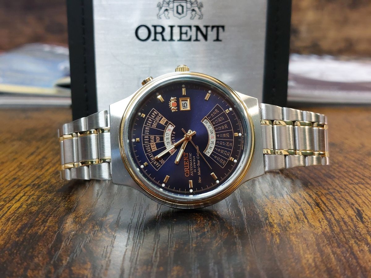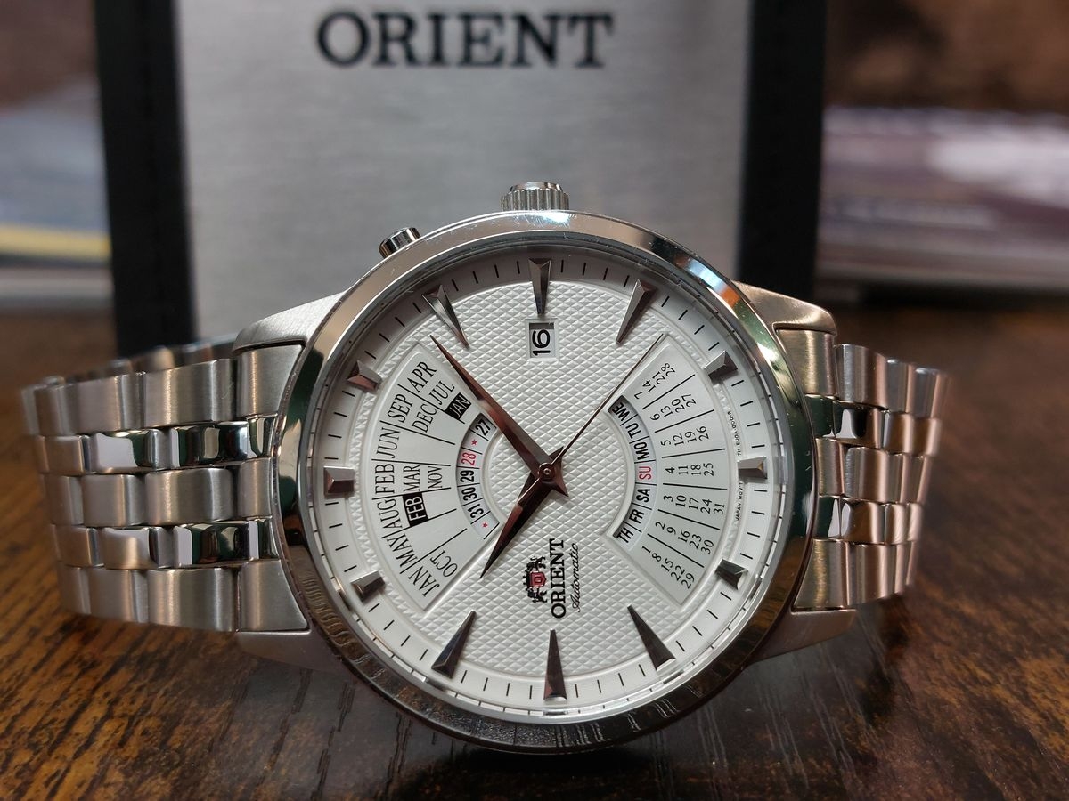 Z_bych 2025 #1 Napisano 18 Października (edytowane) Zegarek męski Orient RAY II Mechanical Sports TAA02005D9 NOWY gwarancja Cena 840 800 zł + wysyłka Stan 10/10 ZEGAREK ORIENT Mechanical Sport TAA02005D9 to wyjątkowy model z serii nurkowej, łączący sportowy charakter z wysoką funkcjonalnością. Wyposażony w japoński mechanizm automatyczny Orient F6922 z możliwością dokręcania koronką i funkcją stop sekundy, pracujący na 22 kamieniach łożyskujących, oferuje niezawodność oraz 40-godzinną rezerwę chodu. Koperta ze stali szlachetnej w kolorze srebrnym ma średnicę 42 mm, grubość 13 mm i wysokość z uszami 47 mm. Zegarek posiada zakręcaną koronkę, zakręcany dekiel oraz wewnętrzny obrotowy pierścień, które podkreślają jego profesjonalne przeznaczenie. Wodoszczelność na poziomie 200 m (20 bar) sprawia, że model jest w pełni przygotowany do nurkowania rekreacyjnego. Czarna tarcza nadaje zegarkowi eleganckiego i uniwersalnego wyglądu. Wskazówki i indeksy pokryte zostały wysokiej jakości Super-LumiNovą, zapewniającą czytelność w każdych warunkach, także pod wodą. Na tarczy umieszczono podwójny datownik – z dniem miesiąca oraz nazwą dnia tygodnia. Zegarek chroni solidne szkiełko mineralne, a całość osadzona jest na masywnej srebrnej stalowej bransolecie o szerokości 22 mm, wyposażonej w zapięcie zatrzaskowe z zabezpieczeniem i możliwość regulacji obwodu do 21 cm. Model waży 163 g, co daje poczucie solidności i pewności na nadgarstku. To doskonały wybór dla miłośników sportowego stylu, nurków i wszystkich, którzy cenią wysoką jakość wykonania połączoną z niepowtarzalnym designem. Specyfikacja: Marka: ORIENT Model: TAA02005D9 Rodzaj: Produkt męski Mechanizm: automatyczny Kaliber mechanizmu: Orient F6922 Rezerwa chodu: 40 godzin Dokręcanie koronki: Tak Materiał koperty: stal Kolor koperty: srebrny Kolortarczy: granatowy Szkiełko: mineralne Typ paska: Bransoleta Kolor paska: Srebrny Szerokość paska: 22 mm Wodoszczelność: 200m = WR200 Zakręcana koronka: Tak Szerokość koperty: 41.5.00mm Grubość koperty: 13.00mm Szerokość koperty LUG to LUG: 47 mm Waga całkowita: 168 g Gwarancja: 24 miesiące Zegarek męski Orient Automat FEU00000DW Multi Year Calendar Cena 990 890 zł + wysyłka Stan 8/10 Zegarek Orient, znany, lubiany, chętnie kupowany i noszony. To reedycja kultowego zegarka z czasów PRL (patelnia, cinkciarski). Granatowa tarcza ze szlifem słonecznym i złote akcenty na kopercie, bransolecie i tarczy dają tej wersji wyjątkowo elegancki charakter, ale całość sprawdzi się idealnie jako zegarek EDC. Jednak, ze względu na sporą średnicą, zegarek polecałbym na nadgarstek nie mniejszy niż 17 cm obwodu nadgarstka. Zegarek Orient Automatic Multi Year Calendar FEU0A003WH to ciekawy męski czasomierz z bardzo rozbudowanym kalendarzem, który wskazuje aktualny rok, miesiąc, dzień miesiąca i tygodnia. Wszystko to zostało opisane na tarczy w kolorze białym, którą umieszczono we wnętrzu koperty ze stali nierdzewnej. Zegarek posiada, klasę wodoszczelności 50M. Zegarek jest objęty 12-m-czną gwarancją. Specyfikacja: Marka: Orient Model: FEU00000DW Rodzaj: męski Wodoszczelność: 50 metrów Mechanizm: automatyczny , 21 kamienie , japoński Materiał koperty: stal szlachetna Kształt koperty: okrągły Szerokość koperty: 43.0mm Grubość koperty: 12.0mm Kolor tarczy: granatowy Szkiełko: mineralne Materiał bransoletki: stal szlachetna Szerokość bransoletki: 20 mm Maks. obwód nadgarstka: 21 cm EAN: 4942715004194 Gwarancja: 12 miesięcy Stan mechaniczny: zegarek w nienagannym stanie mechanicznym, na dokładym, łądnym chodzie z pełną rezerwą chodu Stan wizualny: zegarek używany, ale sporadycznie, na kopercie i bransolecie mogą znaleźć się jakiś drobne, "koszulowe" ryski. Edytowane Czwartek o 10:59 przez Z_bych 0 www.katatime.pl www.toskania.org.pl Udostępnij tę odpowiedź Odnośnik do odpowiedzi Udostępnij na innych stronach