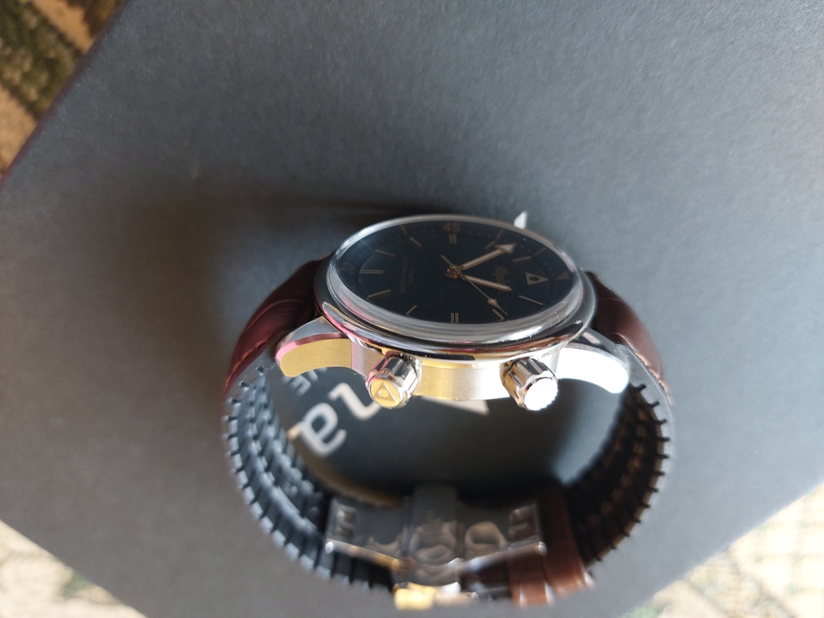 Zegarek jest używany ale w stanie naprawdę bardzo ładnym. Mechanicznie bez zastrzeżeń, trzyma punktualność i rezerwę chodu, chód jest czysty i równy. Oczywiście na kopercie znajdą się jakieś ślady, chociaż zasadniczo cokolwiek widać na prawym, dolnym uchu (ale i tutaj trzeba poszukać pod światło). Szafirowe szkło i ceramiczna wkładka nie mają najmniejszych śladów.