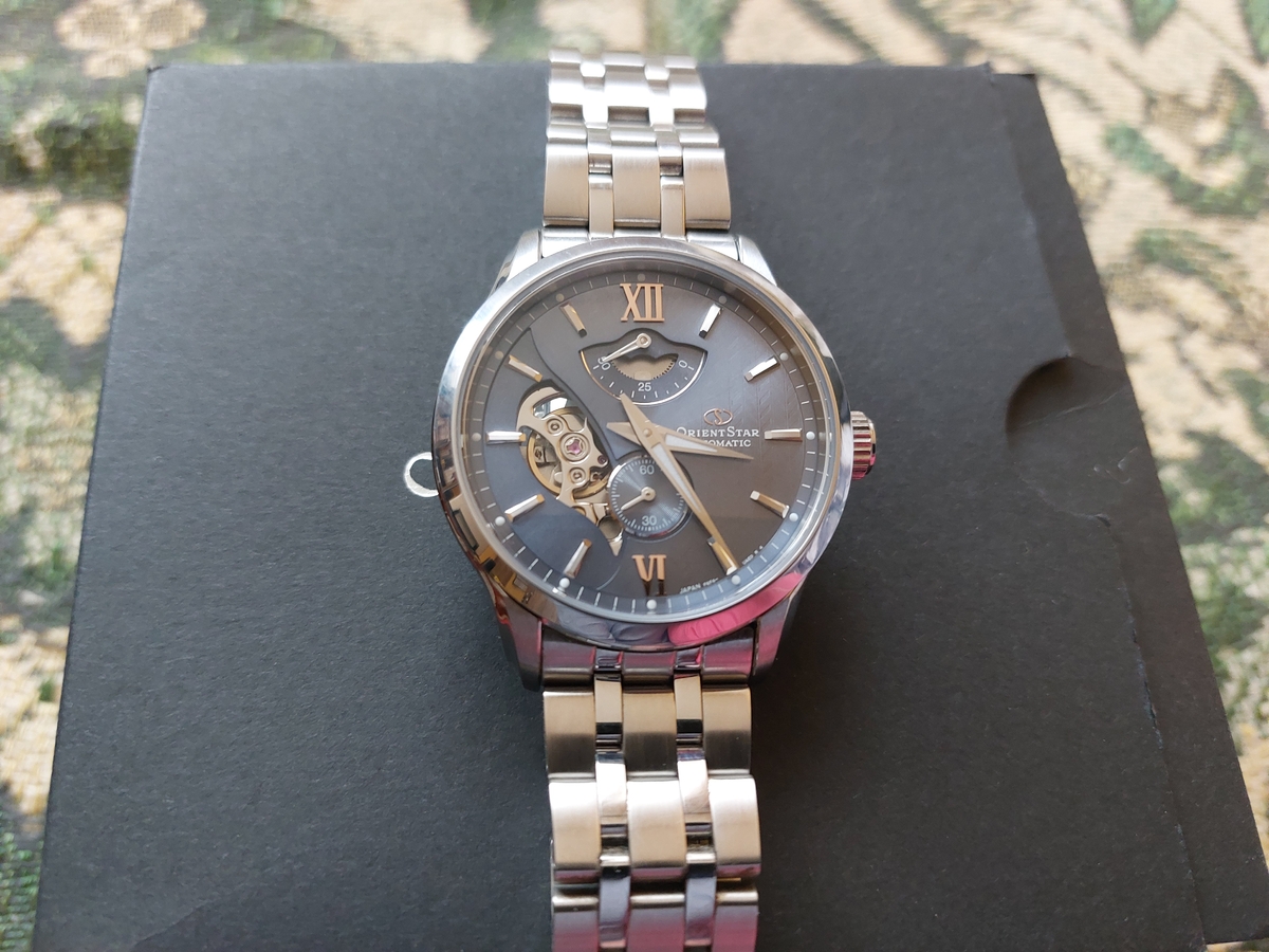 Z zegarkiem nigdy nic się nie stało, nie upadł, nie był otwierany, nie był naprawiany, noszony z poszanowaniem w domu i pracy biurowej, regularnie kręcił się w rotomacie. Na zegarku mogą znaleźć się włoskowate ryski na powierzchniach polerowanych koperty, na co dzień niezauważalne przy noszeniu.