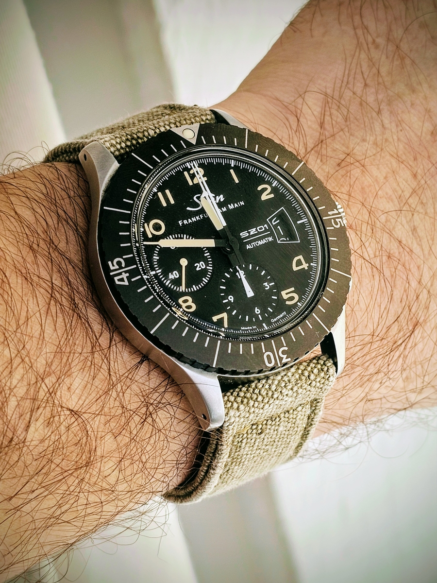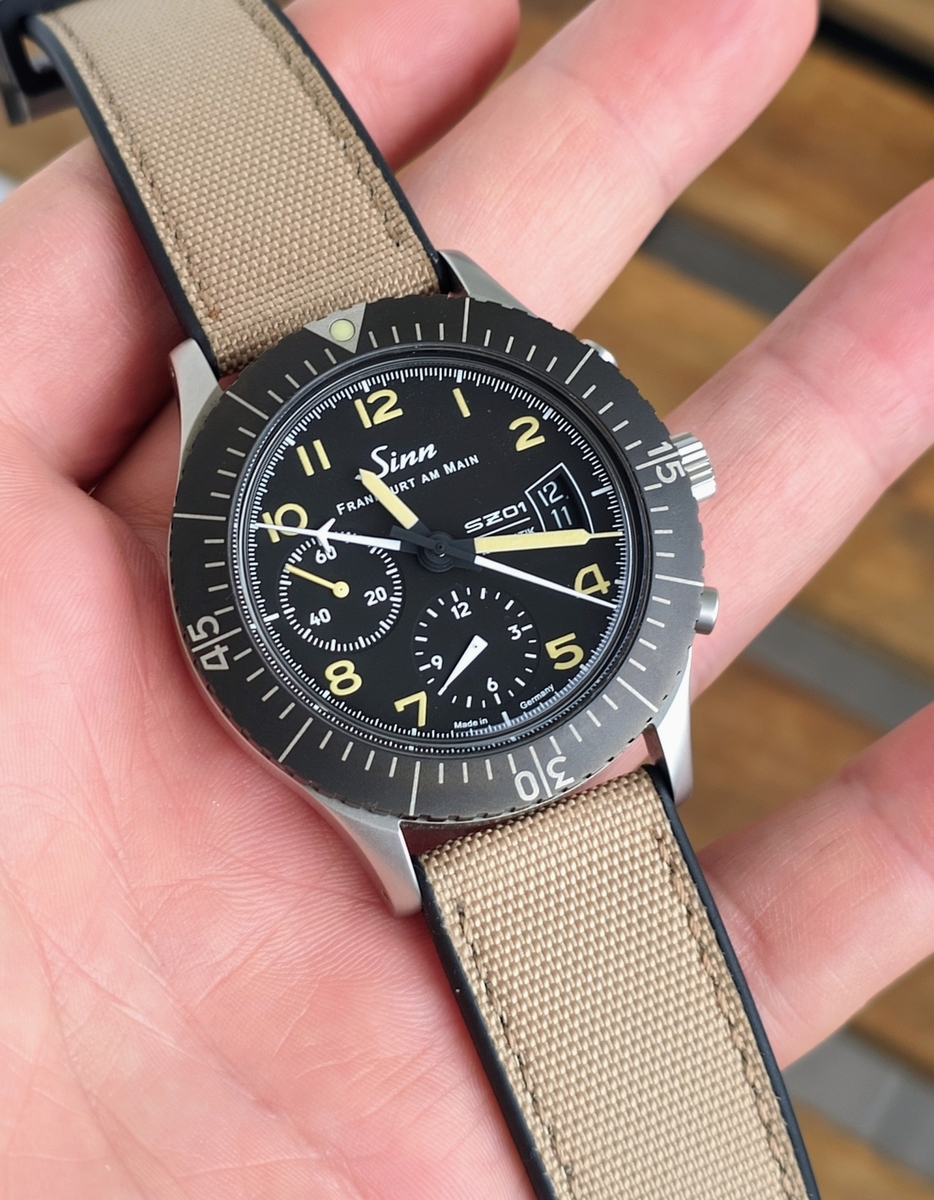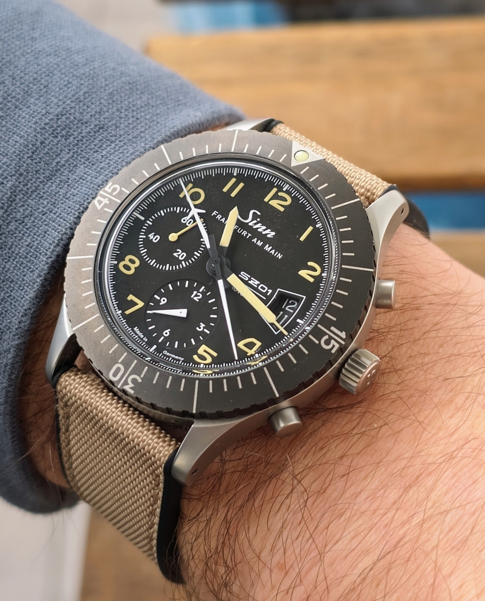 Sinn 103 St to zegarek wszystko-mający: chronograf, datownik, dzień tygodnia w dwóch językach, zakręcana koronka, porządna luma, obrotowy bezel, do tego wodoszczelność godna prawdziwego nurka - 200m, nawet zapięcie bransolety posiada przedłużenie