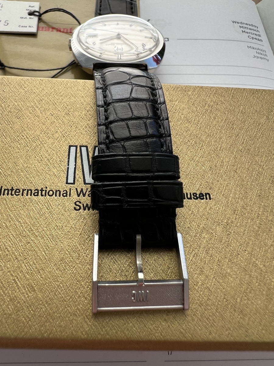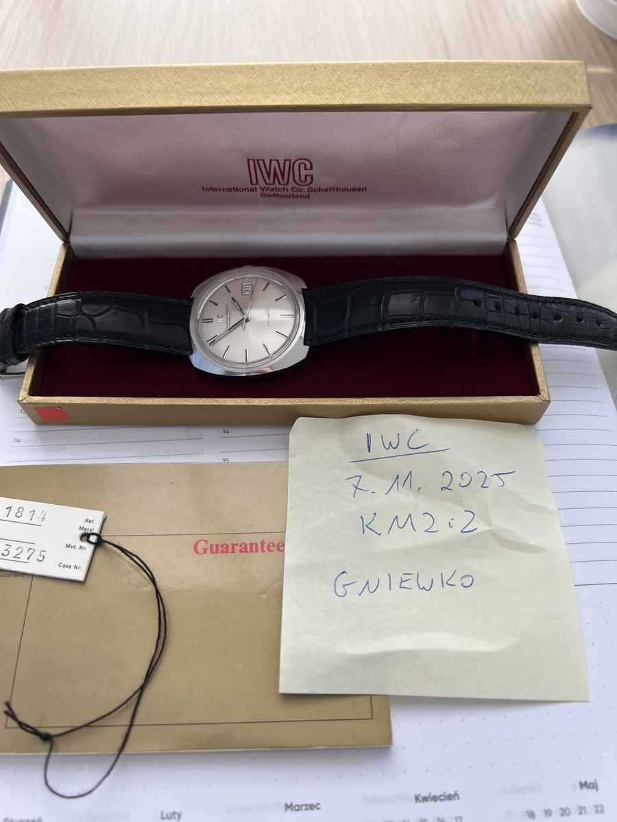 gniewko 115 #1 Napisano 7 Listopada Sprzedam piękny zegarek IWC ref. 1814 w stanie New Old Stock 1976r. z full kompletem. Zestaw zawiera oryginalne pudełko, papiery oraz metkę. Zegarek jest w idealnym stanie technicznym i wizualnym. Nigdy nie noszony. Zegarek około 12 lat temu miał zrobiony serwis okresowy/po zakupowy u Pana Zbyszka Bronowskiego. Mechanizm: automatyczny cal. 8541B Wymiary: 36x40 [mm] bez koronki Cena: 11000 zł Zdecydowanie preferowany odbiór osobisty w Warszawie. Wysyłka możliwa, z pełną odpowiedzialnością spoczywającą na kupującym. 0 Udostępnij tę odpowiedź Odnośnik do odpowiedzi Udostępnij na innych stronach