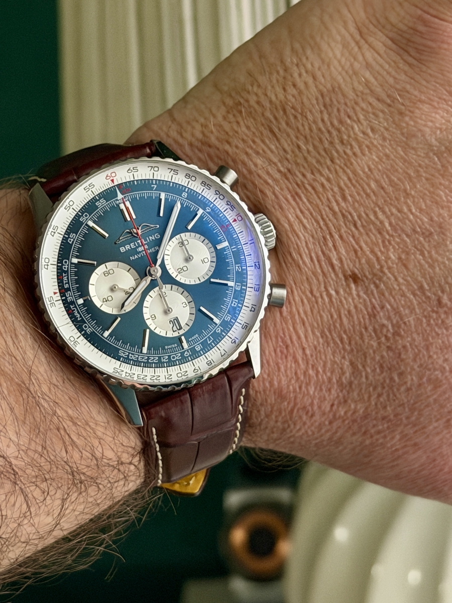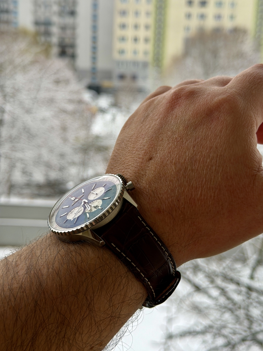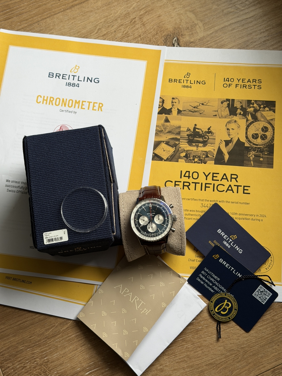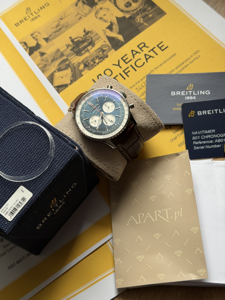 AdiU 240 #1 Napisano 16 godzin temu (edytowane) Na sprzedaż świetny i kultowy Breitling Navitimer 46mm nowy model wypuszczony na rocznicę 140 lat manufaktury Breilting w 2024r. Bardzo udana tarcza w niebieskim kolorze, świetne wypukłe szkło przez co tarcza mieni się od koloru niebieskiego po zielony! Sprzedaje full set łącznie z paragonem zakupu z salonu Apart! Ważne Gwarancja przedłużona na 8 lat!!! Do 2032r! Zegarek praktycznie nowy kilka razy na ręce !!! Forumowe 9,8/10 Cena: 29 500 zł !!! Odbiór Śląsk lub spotkanie Łódź / Wrocław Edytowane 16 godzin temu przez AdiU 0 Udostępnij tę odpowiedź Odnośnik do odpowiedzi Udostępnij na innych stronach