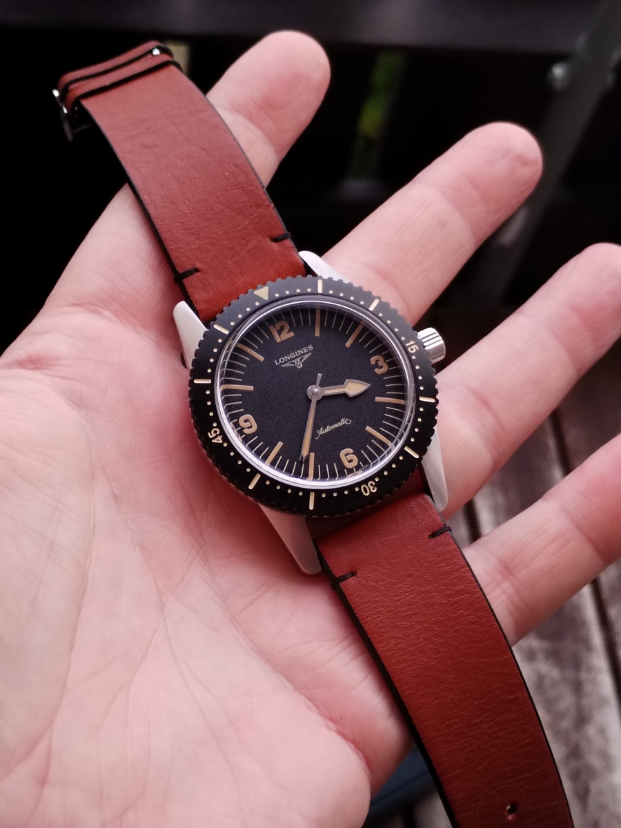 Przy okazji tej recenzji nie jest moim zamiarem rozpisywanie się o historii Longinesa. Trzeba jednak mieć na uwadze, że w przypadku recenzowanego modelu mamy do czynienia z dość wierną reedycją modelu z lat 50tych XX wieku i przy tej okazji należą się na Longinesa pierwsze (i nie ostatnie) brawa. Bo oczywiście Longines oferuje ten model także w kopercie o średnicy 40 mm - ref. L1.645.4.75.4, jednak przy tej okazji nie zapomniano o tych miłośnikach vintage, którzy tak jak ja (również ze względów anatomicznych ) nie tylko życzą sobie zegarków wyglądających jak te, które produkowano kilkadziesiąt lat temu, ale również takich, które swoją wielkością pasują raczej do połowy XX wieku niż czasów nam współczesnych. Tak jest w przypadku recenzowanego przeze mnie zegarka, bo w końcu chodzi o model, którego stalowa koperta (stal 316L) ma 35 mm średnicy, czyli jak na dzisiejsze standardy bardzo mało.