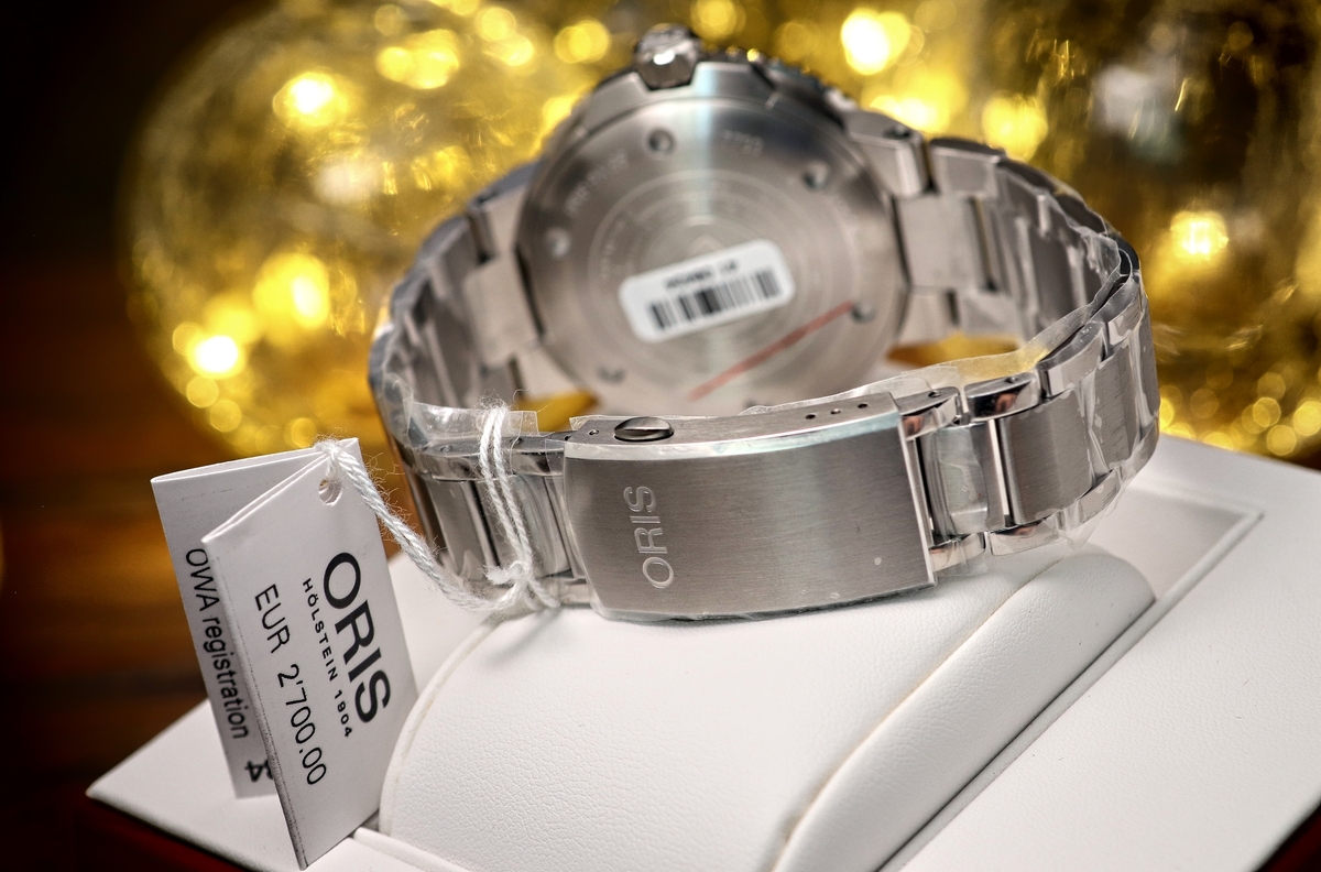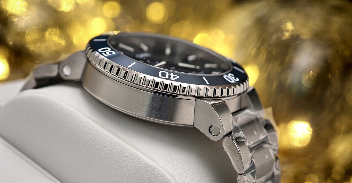 Model jeszcze sprzed zmian tnących koszty, dlatego na pokładzie pracuje Valjoux 7750 ze stop-sekundą i 48h rezerwy chodu, do tego bezel z "kropką" na godz. 12 zamiast trójkąta. Zegarek jest na świetnie pasującym, skórzanym pasku, dodaję również niemal nieużywaną bransoletę H-link (praktycznie żadnych rysek, nawet na zapięciu), która została dokupiona oddzielnie. Stan określam na mocne 8/10, zauważyłem kilka śladów na bezelu oraz na kopercie, również drobnych kilka rysek na dekielku. Hesalitowe szkiełko bez żadnych śladów - czyste.