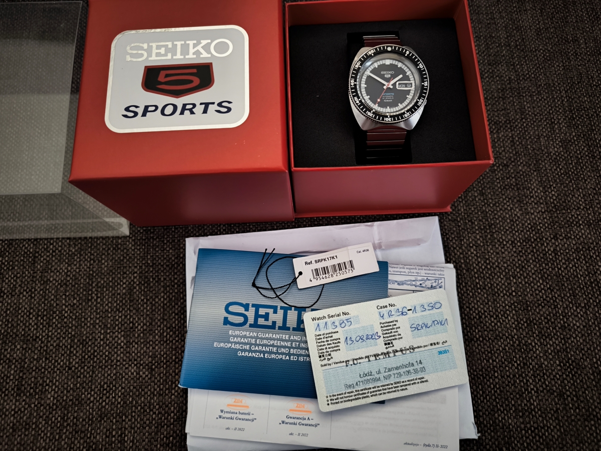 W zestawie pudełko i dodatkowy pasek – nie moglem znalesc karty gwarancyjnej razem z instrukcja obslugi od Zibi, byla w bialej torbie od Seiko, mam dowod zakupu – FVAT od Tempus.