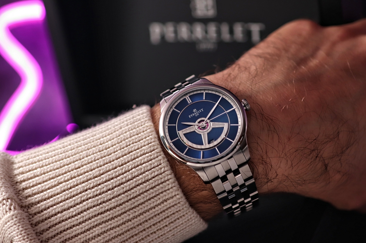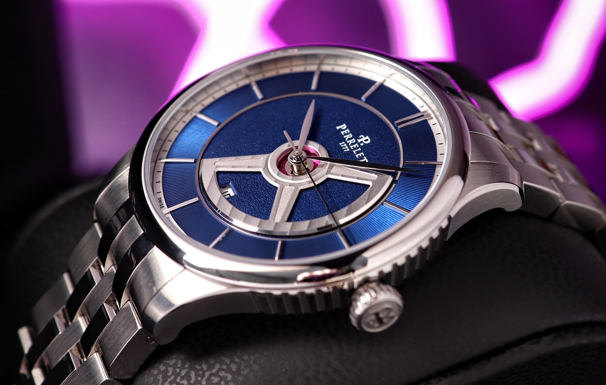 - Tarcza: Niebieska tarcza ze szlifem słonecznym i nakładanymi indeksami