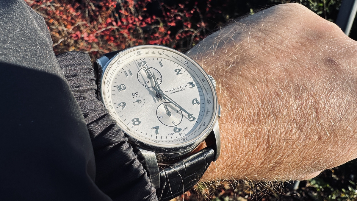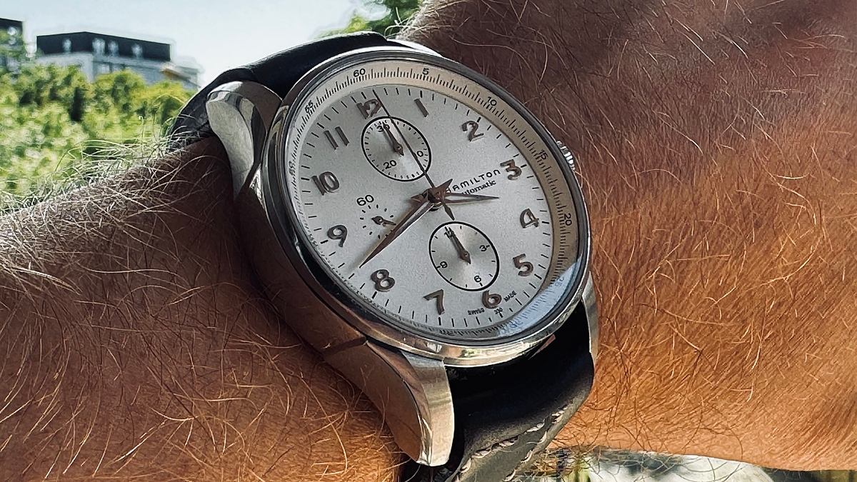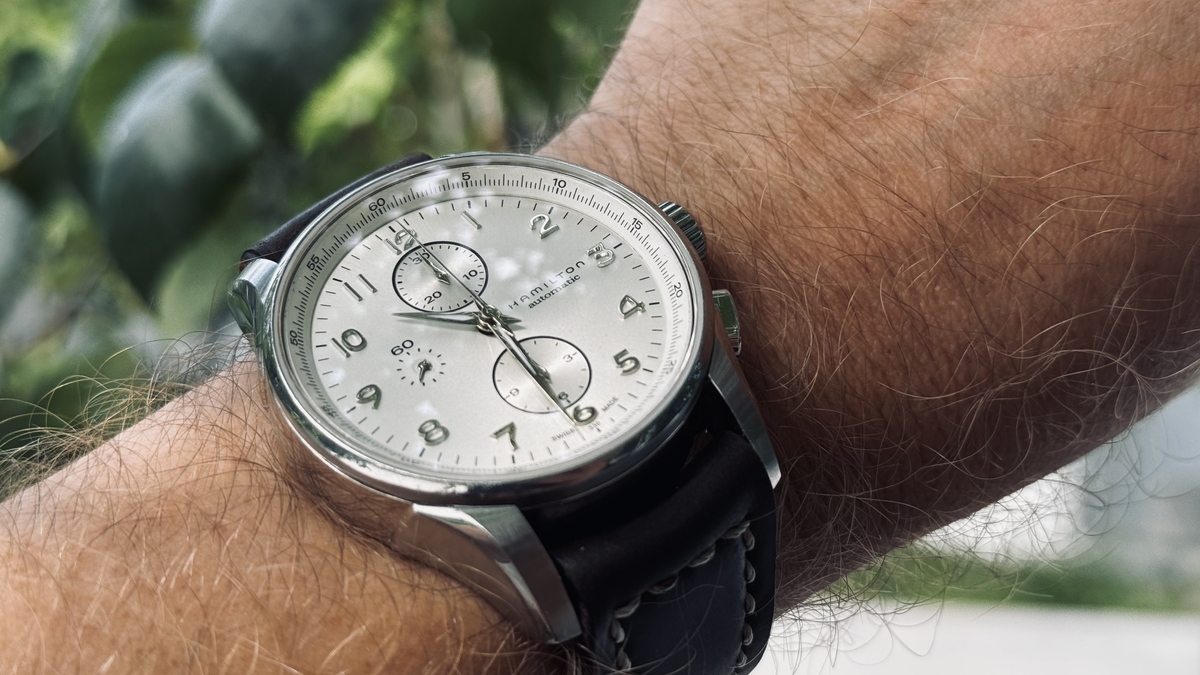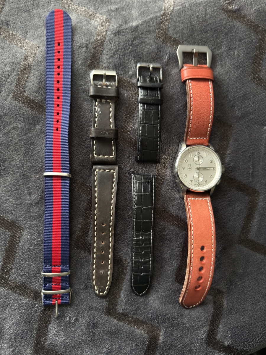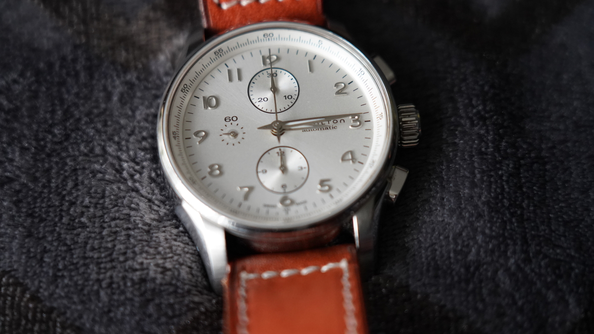 tommly 12032 #1 Napisano Niedziela o 16:12 Wyprzedaży ciąg dalszy: Hamilton Jazzmaster Maestro chrono na werku VJ7750 ref: H327160 Zegarek zakupiony jakiś czas temu na naszym bazarku. W komplecie zegarek i 4 paski: aktualnie założona jest NOWA brązowa koniakowa skóka (foto) + oryginalny czarny skórzany pasek, ciemno-brązowa skórka od jakiegoś paskoroba i nowe nato. Stan wg skali forumowej oceniam na 8/10 - był noszony, więc są jakieś ślady użytkowania, ale nic poważnego. Ściereczka CapeCode powinna poradzić sobie z tym wyśmienicie. Szkło szafirowe czyste. Rozmiar koperty to 45mm, ale nosi się wygodnie nawet na mniejszych nadgarstkach (jak 43mm koperta). Ja mam w chwili obecnej nadgarstek o obwodzie ok. 17,5cm. Tarcza w zależności od światła zmienia barwę od białej, poprzez kremową do srebrnej. Wodoszczelność 100m Szerokość koperty w uszach: 22mm, paski 24 mm (zakrzywione teleskopy). Cena: 2890 zł (koszt wysyłki wliczony w cenę, do wyboru kurier lub paczkomat InPost) We Wrocławiu mile widziany odbiór osobisty. Zapraszam. 0 ..."Wszystko jest możliwe. Niemożliwe po prostu wymaga więcej czasu"... Dan Brown Udostępnij tę odpowiedź Odnośnik do odpowiedzi Udostępnij na innych stronach