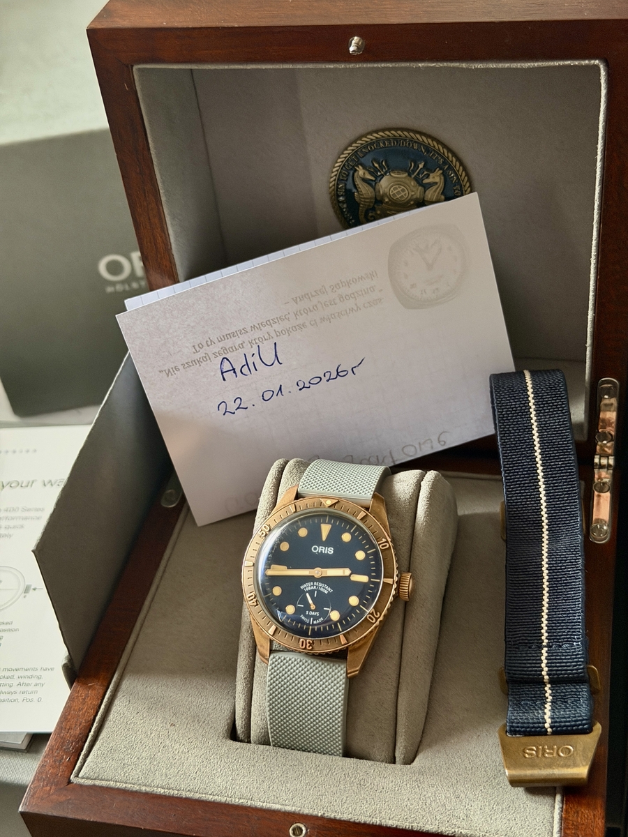 AdiU 243 #1 Napisano 22 Stycznia Na sprzedaż Oris Carl Brashear Caliber 401 Limited Edition! Świetny zegarek z brązu atramentową tarczą z wypukłym szkłem dają rewelacyjny efekt dodatkową zaletą jest manufakturowy mechanizm caliber 401 na 10 letniej gwarancji!!! Zegarek z 2021r!!! Stan super ! Cena : 11 000 zł możliwa zamiana ! Odbiór Śląsk lub do uzgodnienia IMG_0825.webp 0 Udostępnij tę odpowiedź Odnośnik do odpowiedzi Udostępnij na innych stronach