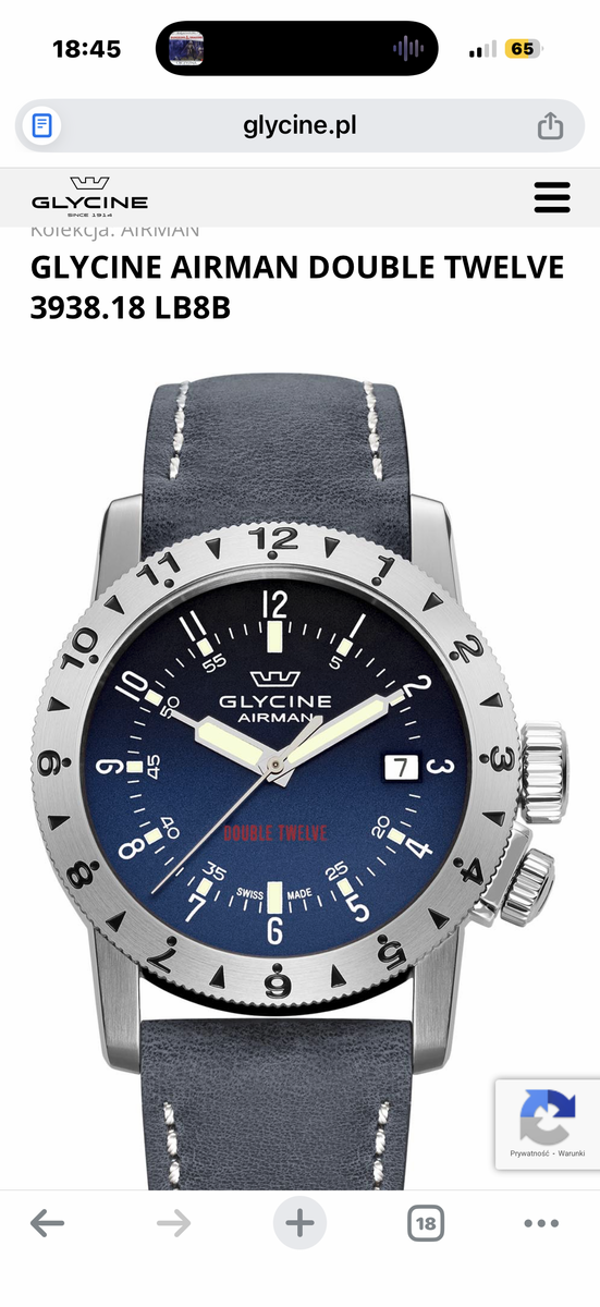 1. ETERNA MATIC Les Historiques Air Force 1 ref. 8405.41 3800 zł + wysyłka Stan - bezpieczne 8/10 W 2000 r. Eterna wprowadziła model mocno nawiązujący do swoich dawnych zegarków dla pilotów. Air Force I w klasycznej linii Les Historiqus to zegarek w rozmiarze 37 mm (bez koronki) i mający jedynie 9 mm grubości. Warto zwrócić uwagę na grubość zegarka, bo w środku kopery został zamknięty automatyczny mechanizm ETA z komplikacją daty i dość wysokim wewnętrznym bezelem. Na uwagę zasługuje wyjątkowa czytelność zegarka a fajnym smaczkiem jest ciemna czerwień sekundnika i trójkąta na bezelu. Bezel, jak przystoi na zgarki lotnicze, obraca się w obie strony. Koronka od bezela jest dyskretnie schowana w kopertę, praktycznie się z nią licuje. Zegarek jest używany, ale w pięknym stanie zachowania, na polerowanych bokach jedynie minimalne, „mankietowe” ślady używania. Szkło i dekielek czyste, więc jak na 25-cio letni zegarek to wyjątkowy egzemplarz. W komplecie jest także pudełko i oryginalny, ale podniszczony pasek, który został zastąpiony świetnym paskiem z naturalnej skóry w stylu pasków do pilotów. Do tego paska została założona oryginalna klamerka. Mechanicznie zegarek jest w perfekcyjnym stanie, na równym, bardzo ładnym chodzie, miło posłuchać. Specyfikacja: Marka: Eterna (Szwajcaria) – sprzed przejęcia Model: Eterna Matic Air Force 1 Linia: Les Historiques Ref.: 8405.41 Mechanizm: ETA 2824-2 automatyczny, z dokręceniem, stopsekundą i datą Koperta: stal nierdzewna Szkło: szafirowe Wymiary: średnica 37 mm (b/k), grubość 9 mm Pasek: 20 mm, naturalna skóra, klamerka stalowa, logowana Indeksy i wskazówki pokryte warstwą luminescencyjną Wodoszczelność 30 m Gwarancja: 6 miesięcy 2. Glycine Combat Classic 36 GL0343 1850 zł + wysyłka Stan bezpieczne 8.10 Zegarek Combat Classic 36 Automatic GL0343 swoim rozmiarem koperty 36 mm nawiązuje do pierwszych modeli Glycine. Smukły i elegancki kształt idealnie pasuje na nadgarstki męskie i damskie. Klasyczne, eleganckie wykończenie jest widoczne w satynowanej obudowie, która pięknie przechodzi w gładko wypolerowaną ramkę, zapewniając wyrafinowany wygląd. Zegarek jest połączony z bransoletą ze stali nierdzewnej o szerokości 20 mm, naprzemiennie polerowanymi i szczotkowanymi ogniwami, zabezpieczonymi na nadgarstku za pomocą zapięcia motylkowego. Granatowa tarcza ze spiralnym wzorem, smukłe, złocone wskazówki w kształcie liścia i numeryczne znaczniki godzin zapewniają wyjątkową czytelność odczytu. Tarcza jest chroniona odpornym na zarysowania szkłem szafirowym, pokrytym od spodu trzema warstwami powłoki antyrefleksyjnej. Zakręcany i przeszklony dekiel ukazuje mechanizm automatyczny GL224 oparty na Sellicie SW200-1. To mechanizm z częstotliwością uderzeń 4 Hz (28 800 BPH) i rezerwą chodu wynoszącą 38 godzin oraz wskazaniem dnia miesiąca. Wodoszczelność na poziomie 5 barów/ 50 m chroni przed przypadkowym zalaniem. Specyfikacja: Marka: Glycine Styl: klasyczne Kraj pochodzenia: Szwajcaria Szerokość koperty: 36 mm Rozstaw uszu koperty: 20 mm Grubość koperty ze szkłem: 11 mm Materiał koperty: stal szlachetna Szkło: szafirowe z antyrefleksem Wodoszczelność: 50 metrów Kolor koperty: złoty, stalowy i polerowany Indeksy: cyfry arabskie w złotym kolorze Bransoletka: stalowa w kolorze złotym, zapięcie motylkowe, możliwość wymiany na pasek Mechanizm: automatyczny Sellita SW200 (38h, 28800/h, 26 kamieni) GL224 Funkcje: datownik (dzień m-ca), godzina, minuta, sekunda Dekiel: przeszklony, zakręcany Gwarancja sprzedawcy: 1 rok W komplecie: zegarek, pudełko, komplet zdjętych ogniw Stan mechaniczny zegarka: zegarek w idealnym stanie, na punktualnym chodzie, wszystkie funkcje działają wzorowo Stan wizualny: zegarek używany w naprawdę ładnym stanie, zdjęci pokazują jego faktyczny wygląd, nie były retuszowane.