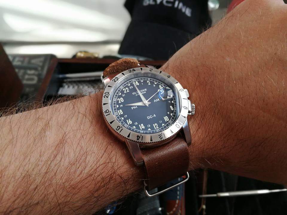 W końcu odebrałem swojego F104 (moja pierwsza Glycine ☺️) i zegarek bardzo fajny tylko przymierzylem i pomimo że nie lubię dużych zegarków mógłby być odrobinkę większy (nie wygląda na swoje 40mm). Pomijając fakt że pasek jest za krótki zapina się ale na przedostatnia dziurkę. af0b370aec200c9bcdcd16c186ab4149.jpg