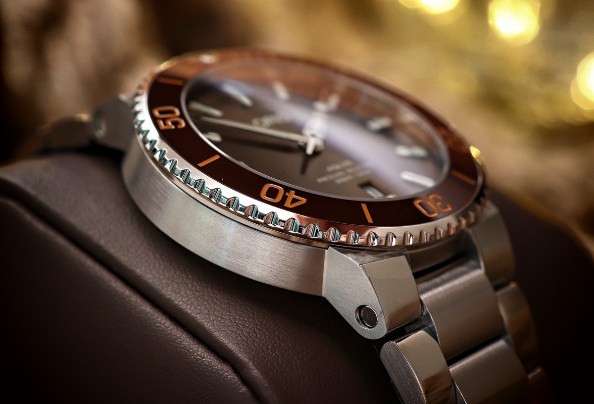 Doskonale znany wszystkim nurek w sportowym rozmiarze i z brązową tarczą i ceramiką.