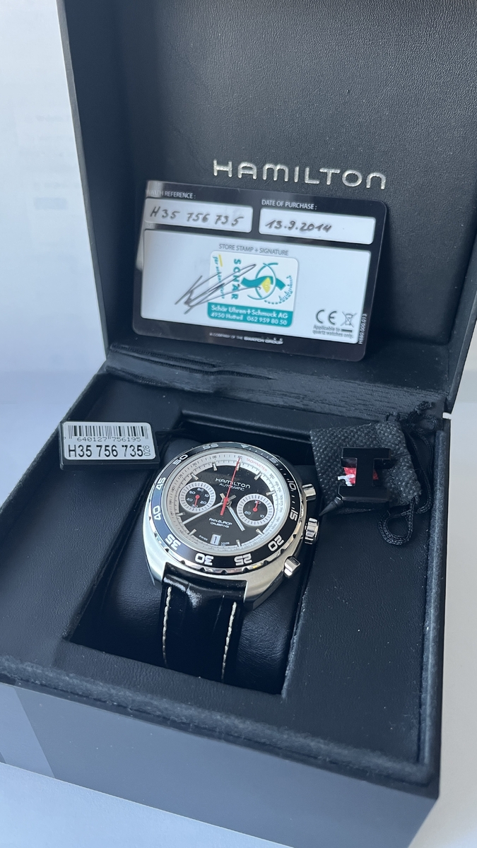 levy75 243 #1 Napisano Poniedziałek o 15:28 Cześć, Na sprzedaż idzie Hamilton Pan Europ Black H35756735 Koperta 45mm, Mechanizm H-311, rezerwa chodu 60h Stan 7/10 Zegarek stan bardzo dobry, praktycznie nowy oryginalny pasek. Ocena stanu tylko z powodu delikatnej rysy/wgniotki z boku koperty (starałem się uchwycić na zdjęciu). Cena; 4100- Najchętniej odbiór osobisty w Warszawie. Ew. wysyłka InPostem. Nie wysyłam za pobraniem. Szczegóły zegarka: https://www.mastersintime.pl/historyczny-h35756735.htm https://www.hamiltonwatch.com/en-int/h35756735-pan-europ.html?srsltid=AfmBOoomyAGLirpRg1iPDuZ3991RAgvQnQohB6m-xmM9C4-gi0ulGFt1 0 Udostępnij tę odpowiedź Odnośnik do odpowiedzi Udostępnij na innych stronach