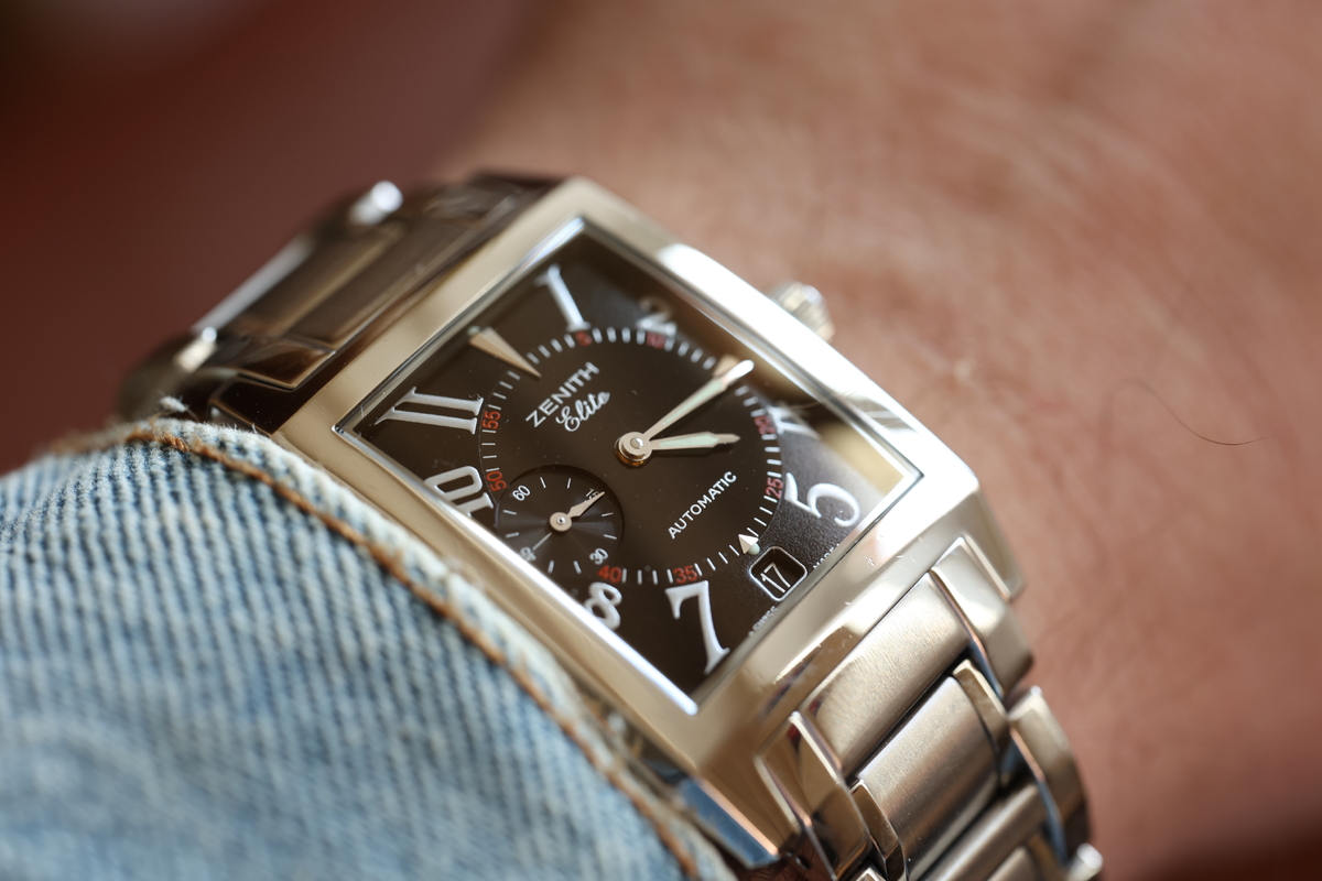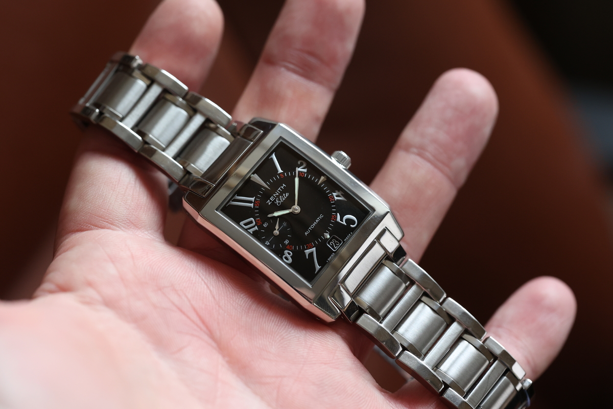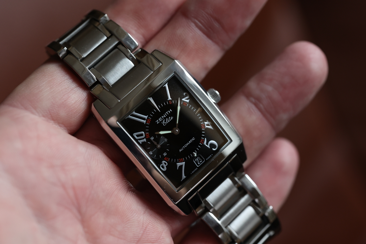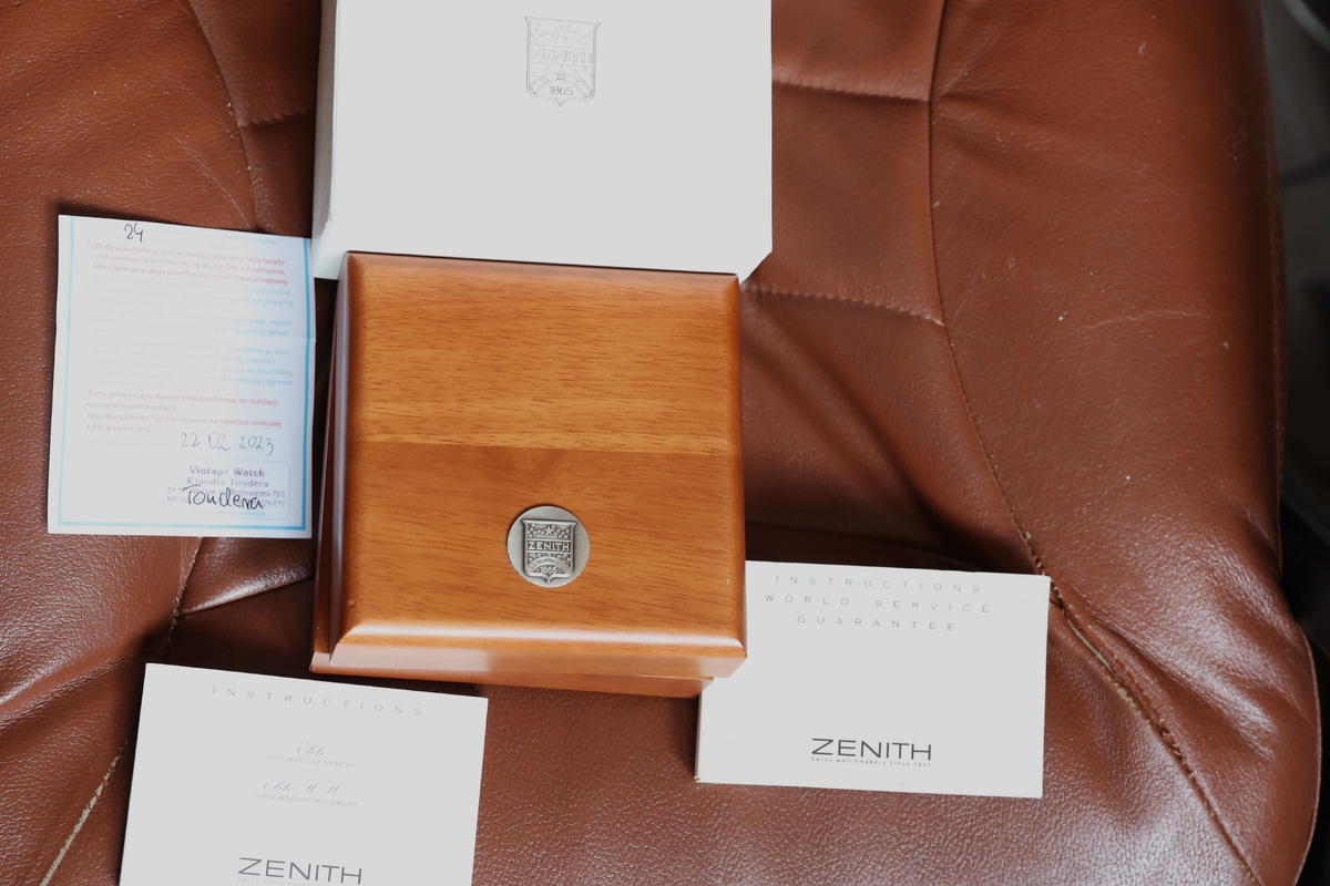 jimmibaton 16168 #1 Napisano Poniedziałek o 10:29 Przedmiotem sprzedaży jest zegarek Zenith Elite Port Royal V 02.0250.684. Model ten był produkowany w latach 2002-2010. Wewnątrz pracuje mechanizm Zenith Cal. 684 - niezwykle udana konstrukcja z 50-godzinną rezerwą chodu i szybką zmianą daty w obu kierunkach. Grubość koperty to 7,5mm, dzięki czemu zegarek idealnie będzie chował się pod mankiet koszuli. Szerokość koperty to 31mm, a odległość od uch ado ucha to 44mm. Na moim 19,5 centymetrowym nadgarstku zegarek wygląda bardzo dobrze, jakby był idealnie skrojony na tę wielkość, choć rozmiar ten nie będzie problemem dla osób z obwodem nadgarstka od 16 cm. Dodatkowo jest jeszcze jedno ogniwko, więc zegarek wejdzie na nadgarstek 21,5 z lekkim luzem. Zegarek jest w bardzo dobrym stanie. W mocnym powiększeniu widoczne są mikroryski, zatem jego stan mogę określić na forumowe 7/10. Próbowałem uwidocznić je na zdjęciach. W normalnym użytkowaniu są praktycznie niewidoczne. Mechanizm jest na dokładnym chodzie, trzyma deklarowaną rezerwę chodu plus kilka godzin. Szkło czyste. W zestawie znajduje się: - pudło tekturowe, -pudło drewniane ( do naprawy zawiaski), - karta z serwisu z lutego 2023 roku, - książeczka Zenith, - dodatkowe ogniwo, Cena: 6500 PLN - nie wykluczam wymian z dopłatami w obie strony 0 Udostępnij tę odpowiedź Odnośnik do odpowiedzi Udostępnij na innych stronach