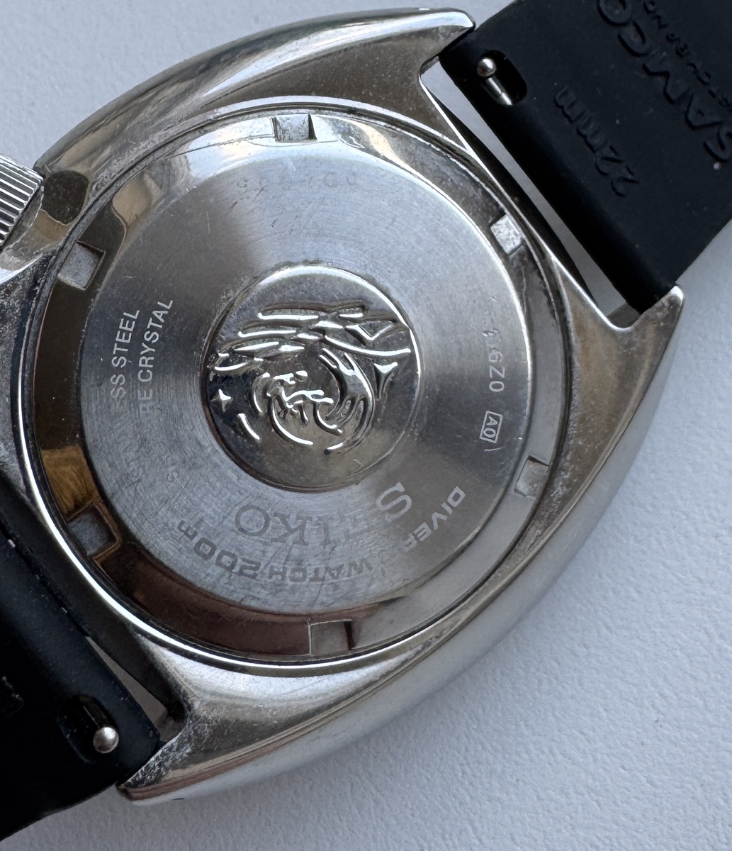 Sprzedam widoczny na zdjęciach zegarek, to znany i lubiany Żółw w wersji z szafirowym szkłem z lupką daty, ceramicznym bezelem, czarną „wafelkową” tarczą i doskonale świecącą lumą. Rozmiary koperty różnie podają 44-45 mm, ale przez wąski L2L nosi się jak dużo mniejszy. Stan określam na 8,5/10 (z powodu braku papierów i pudełka - daję jako zamiennik pudło od G-Shocka). Ma jedynie mikroryski od normalnego używania. Pozbywam się z żalem, ale kupiłem Seiko SPB317J1 i ten musi odejść w świat.