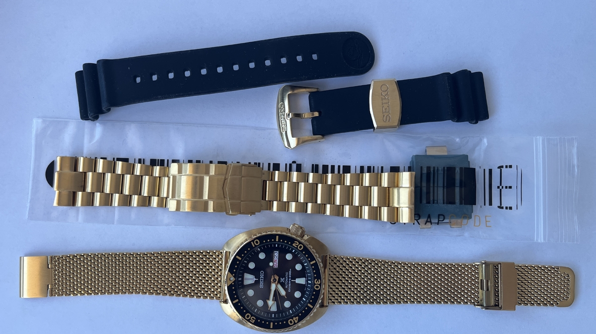 levy75 270 #1 Napisano wczoraj o 08:04 Cześć, na sprzedaż: Seiko SRPC44 Złoty Żółw Koperta 44,3mm, Mechanizm 4R36, rezerwa chodu 41h Stan 9/10 Zegarek nieużywany, Oryginalnie kupiony na pasku kauczukowym (nieużywany). Dokupiona dedykowana bransoleta (idealna) oraz dedykowana bransoleta mesh (idealny) – obecnie założona. Obie bransolety od StrapCode. Cena; 4100,- Najchętniej odbiór osobisty w Warszawie. Ew. wysyłka InPostem. Nie wysyłam za pobraniem. Szczegóły zegarka: https://www.mastersintime.pl/historyczny-srpc44p1.htm 0 Udostępnij tę odpowiedź Odnośnik do odpowiedzi Udostępnij na innych stronach