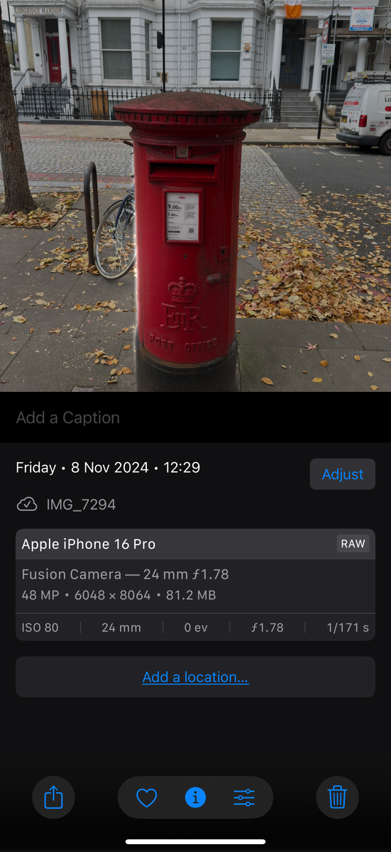Ciekawostka, iPhone 16pro, 1X Raw Max i HEIF Max.