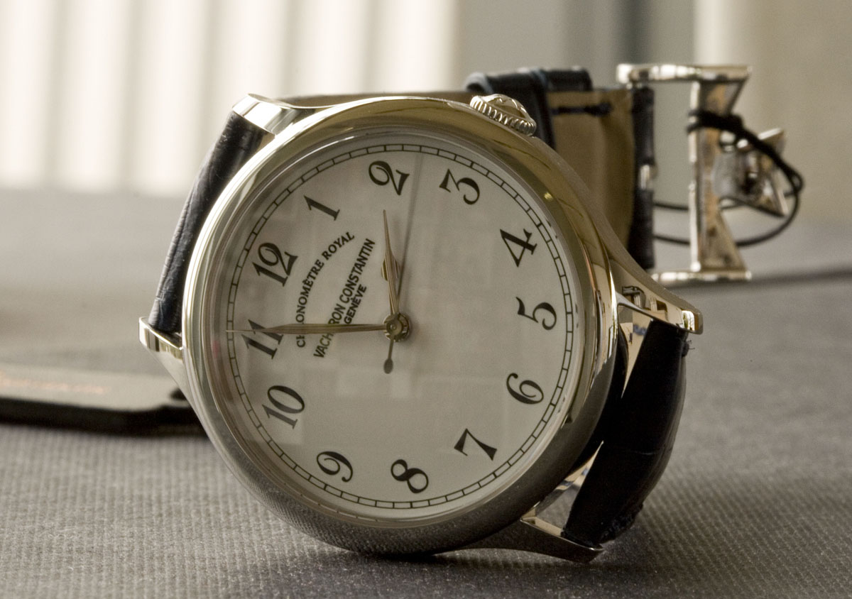 Gość McIntosh #123 Napisano 11 Marca 2009 W roku 2007, firma Vacheron Constantin wprowadziła do oferty Chronometre Royal 1907 inspirowany kieszonkowym pierwowzorem z roku 1907. Czasomierz został wyposażony we własny mechanizm VC (2460 SCC - 28800 vph, 43 godziny rezerwy chodu), który posiada certyfikat COSC, jest wykonany zgodnie z założeniami Pieczęci Genewskiej, a jego piękno podkreśla dekorowany rotor umiejscowiony na łożyskach ceramicznych. 2460 SCC poddawany jest 15 dniowym testom potrzebnym do uzyskania certyfikatu COSC, ale po tym okresie wraca do producenta i przez kolejnych 30 dni przechodzi test w manufakturze Vacheron Constantin. Wszystko po to, aby upewnić się, że werk spełnia ostre kryteria jakie stawia się chronometrom. Nawiązując do pierwowzoru z roku 1907 producent zastosował emaliowaną tarczę. Koperta została wykonana z różowego złota. Nadmienię jeszcze, że pierwszych 100 egzemplarzy nie posiadało jednolitego koloru indeksów - 12 została wyróżniona kolorem czerwonym. Obecnie firma Vacheron Constantin wprowadza nowe wcielenie Chronometre Royal 1907. Jest to limitowany do 15 sztuk model w platynowej kopercie o średnicy 38 mm. Czasomierz będzie dostępny wyłącznie w butikach VC umiejscowionych w Genewie, Moskwie i w Szanghaju. 0 Udostępnij tę odpowiedź Odnośnik do odpowiedzi Udostępnij na innych stronach