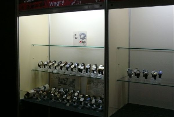 Niestety więcej zegarków nie dało się wyeksponować w przekazanych nam gablotach. Zgodnie z uwagami kierownictwa muzeum musieliśmy i tak odchudzić wystawę. Pozostały modele najciekawsze kolekcjonersko i najładniejsze wizualnie.