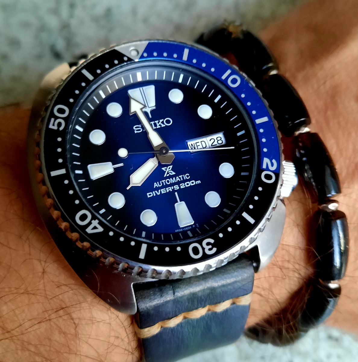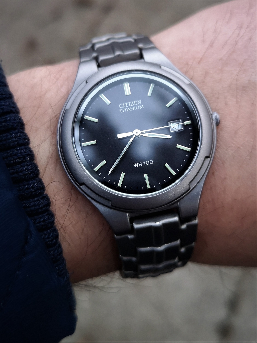 U mnie wciąż na ręce ten sam tytanowy Citizen. Prosty on jak drut, ale daje mega dużo frajdy. Raz, że swoje lata już ma, a wyrwałem go w stanie prawie NOS, a dwa, że nigdy nie miałem zegarka, który by tak idealnie trafiał wskazówką w podziałkę indeksów sekundowych.  Poezja! :)