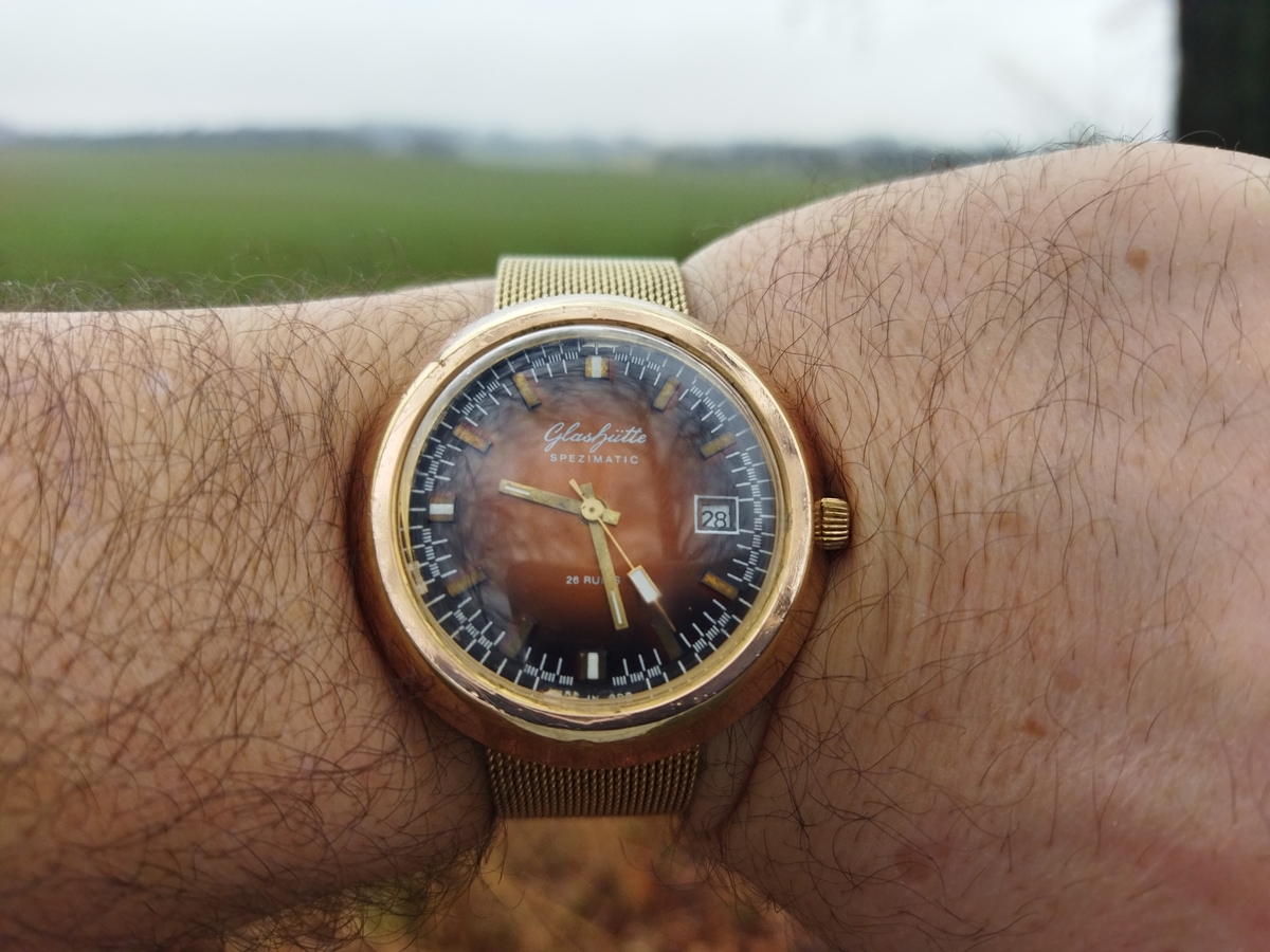 Świetnie to zdjęcie wyszło. Kolorystyka zegarka i tła pięknie zgrane (choć jakbym miał wybierać widok z okna, to Twój "standardowy" dużo przyjemniejszy do życia).