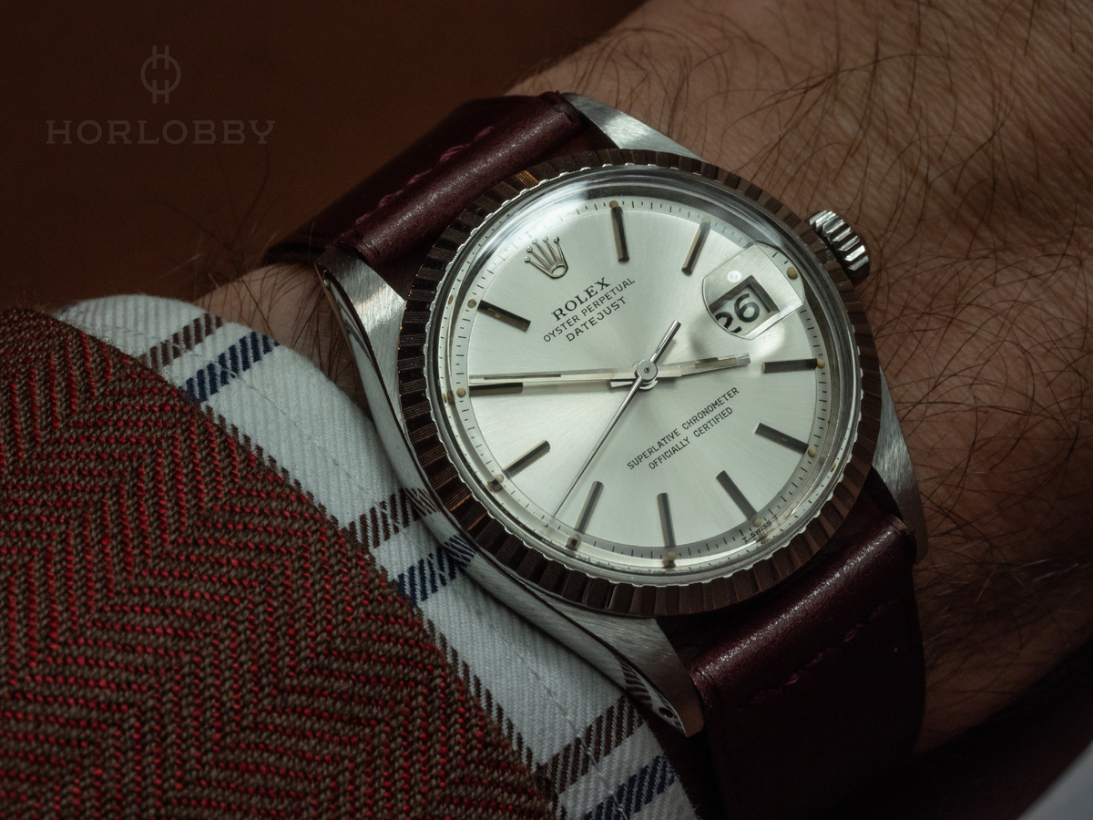 Pasek skórzany, koperta na wysoki połysk i mała sekunda. Czyli garnitura. :D