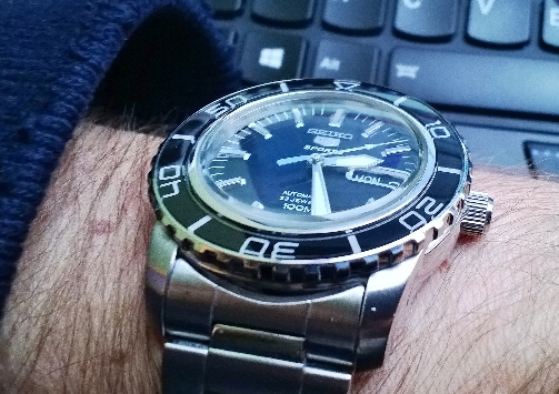 Cena za gumę z zapięciem "z kosmosu", uniemożliwia bardzo skutecznie obracanie (i tak nieprzemyślanym) bezelem, ale wygląda faktycznie OK.