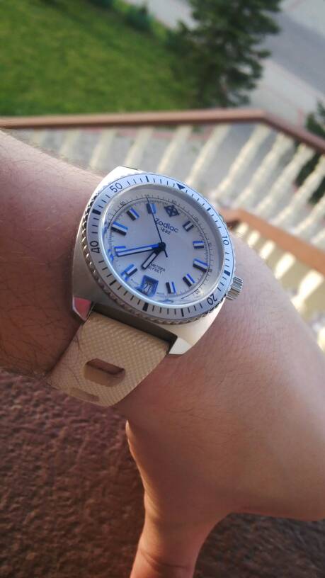 Fajny zegareczek tylko trochę mały. Następnego dnia po zakupie(piaskowa tarcza) zabrała mi go żona i cieszy się dużym powodzeniem i dobrze konkuruje z modowymi.