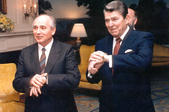 Петродворцовый Классик Ракета 2609 HA, czyli Petrodvorets Classic Raketa "Big Zero" - jeden z symboli Pierestrojki, związany z osobą Michaiła Gorbaczowa (na zdjęciu z Ronaldem Reaganem):