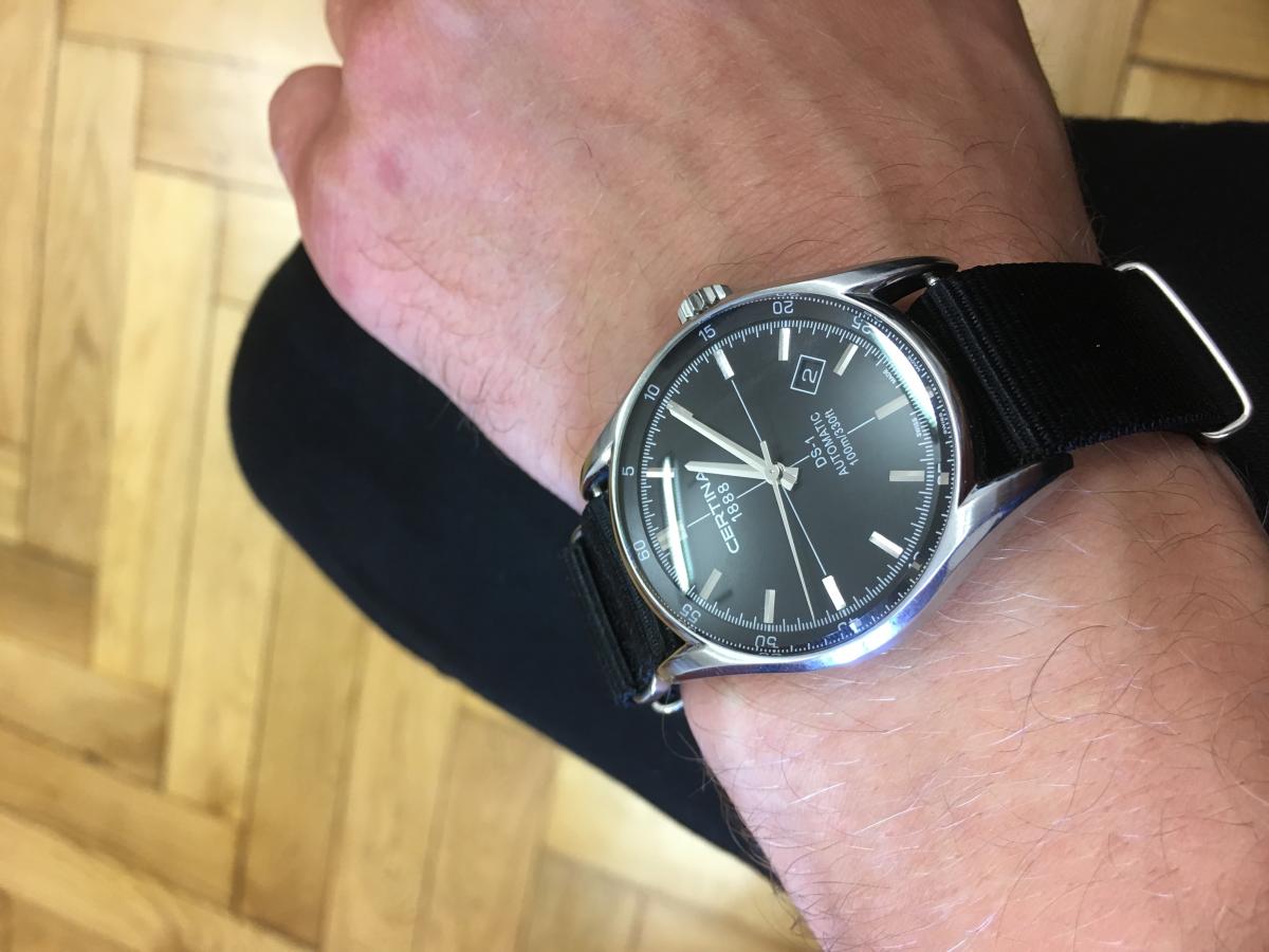 A co do szerokości to dlatego, że to 20 mm, tak że pasuje do Sumo, a Certina ma 21 między uszami, więc NATO 22 byłoby z kolei ciut za szerokie.
