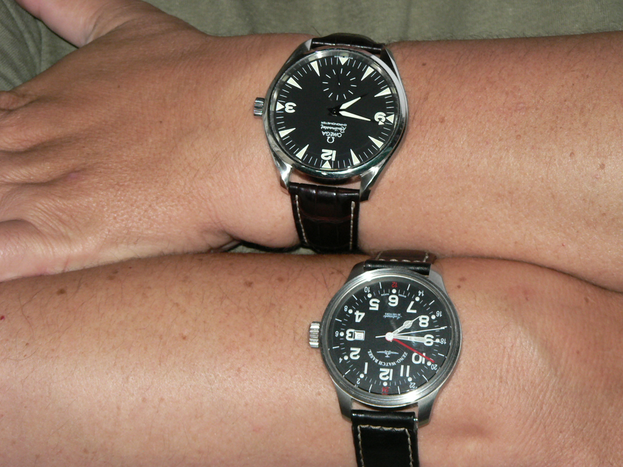 Dla wszystkich Kolegów, którym podobała się moja omega XXL przesłam zdjęcia z dwoma dużymi zegarkami. Trochę żałuję, że nie mialem z sobą na spotkaniu więcej zegarków, w tym prezentowanego na zdjęciach Zeno Watch ( 47 mm).
