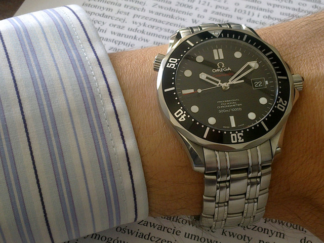 W środku tygodnia wybrałem się do pracy z moim najcenniejszym egzeplarzem, 47 letni Seamaster DeVille, poniżej: