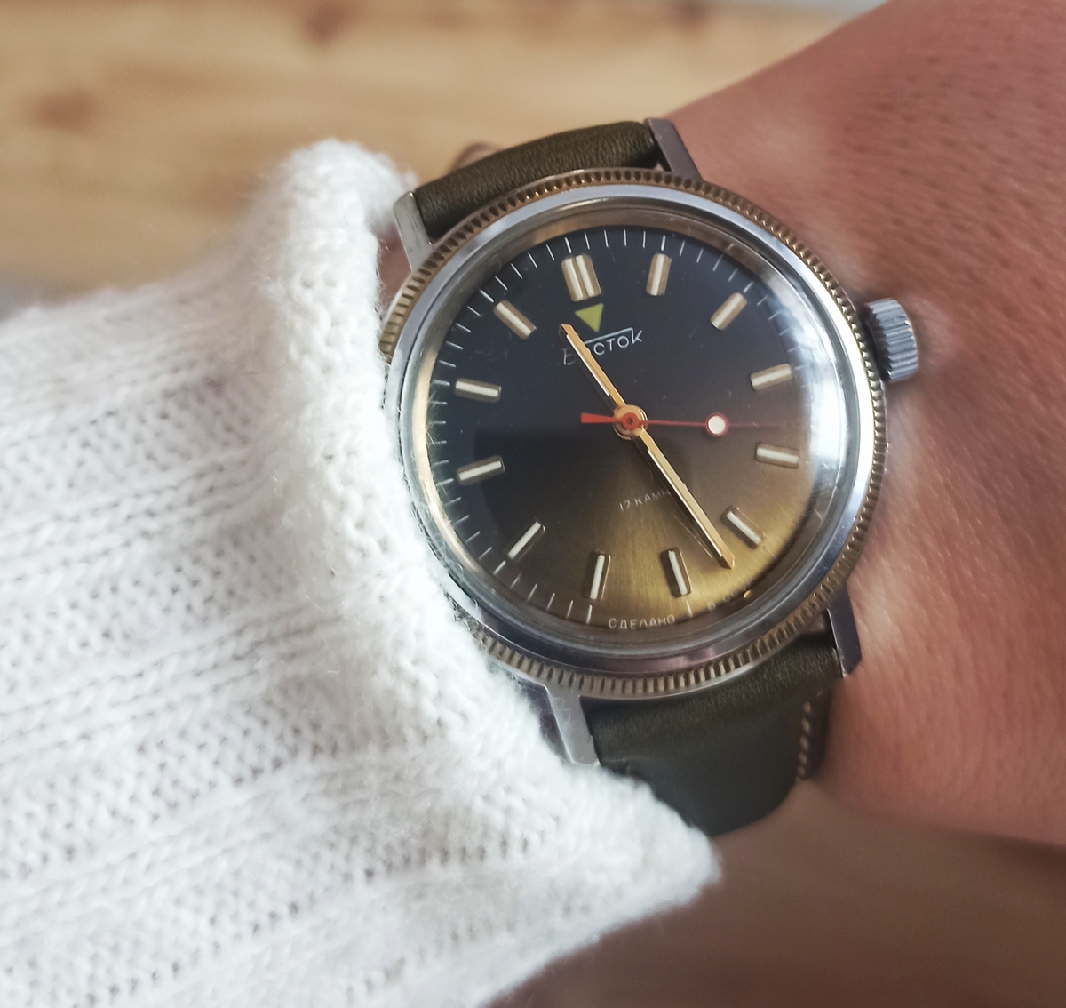 Dzięki Panowie. Nie spodziewałem się takiej przewagi. Też mi ta skóra od razu zagrała. Co nie zmienia faktu, że ten egzemplarz jest płaski dzięki mechanizmowi z ręcznym naciągiem i na NATO układa się idealnie. Lepi się wręcz do ręki. Do tego paski w NATO pasują mi do indeksów tarczy 😉