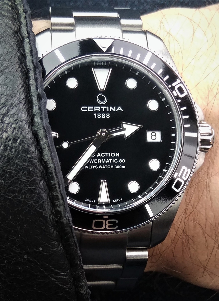 Wizualnie fajnie, jak teraz noszę niby też, ale jakbym tak miał na stałe nosić to nie. Jeszcze zwyczajowo zrobię rundkę na innych paskach i jakimś NATO i wróci na bransoletę.