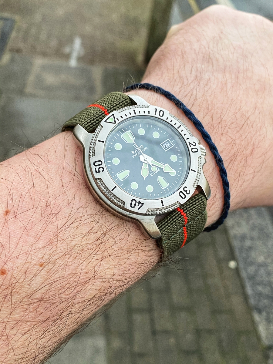 Ale na razie czeka na decyzję czy bazarek czy noszenie. Kupiłem w podobnym klimacie rado captain cooka. Zegar bardzo ładny, mój pięciolatek stwierdził, że ta turkusowa tarcza jest najpiękniejszą ze wszystkich zegarków które mam 😄.