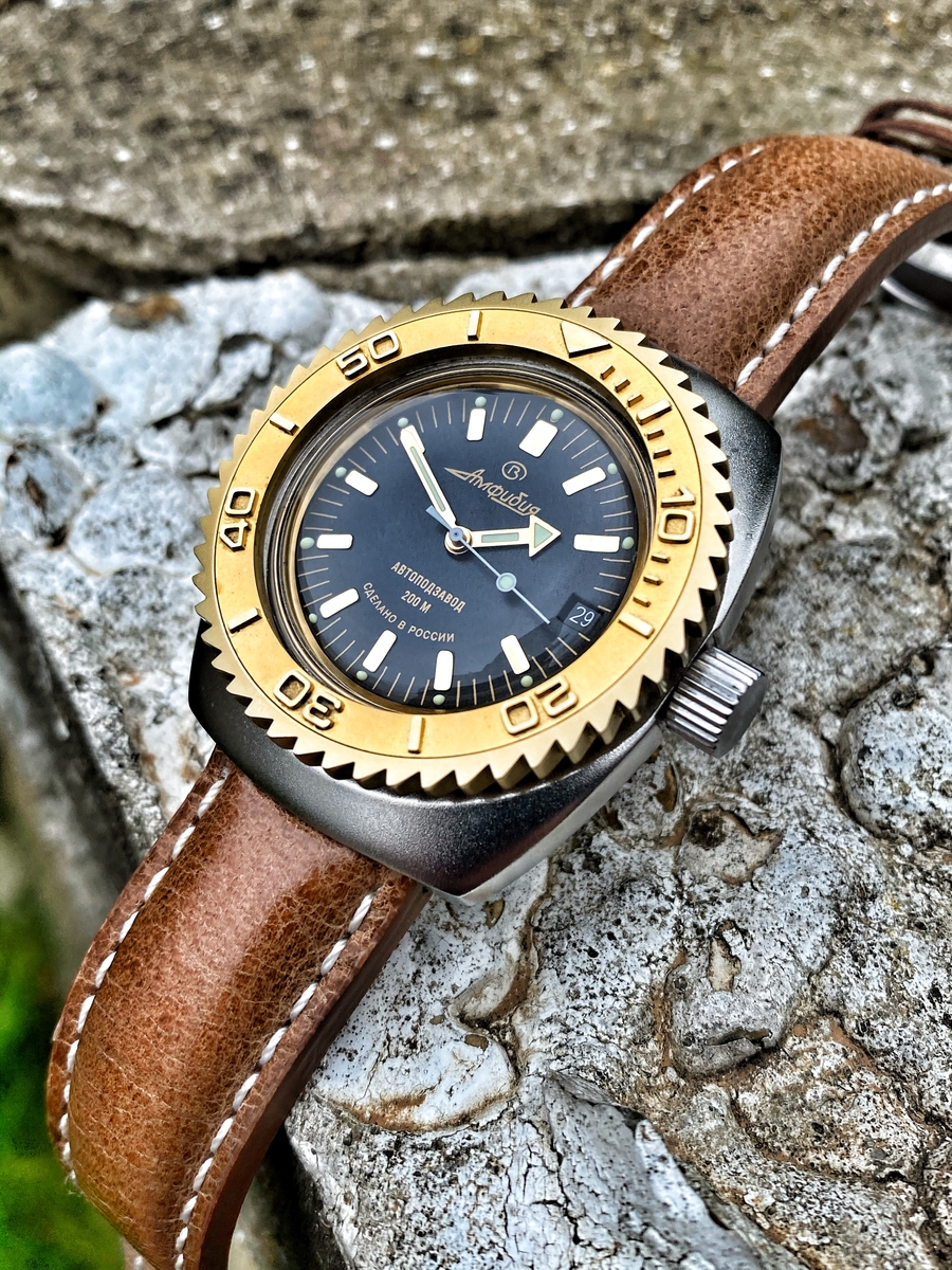 Perpetuum Mobile 65838 #242457 Napisano 29 Marca 2022 4 minuty temu, Paulus57 napisał(-a): No cóż, tłumaczyć może mnie jedynie to, że jeszcze żadnych ruskich nie miałem. Przymierzam się do zakupu, bo jakoś to dziwnie wygląda, że przy sporej ilości zegarków mam taką lukę. Chodzi mi trójka po głowie: Komandirski i Amfibia a także Sturmanski. Polecam Amfibię. Zupełnie inny świat jeżeli chodzi o konstrukcję koperty, koronki, dekielka itp... (o nurkowym bezelu bez żadnego klikania nawet nie wspomnę) a przy tym WR200. 7 minut temu, Paulus57 napisał(-a): Czy ten ostatni też ma taką konstrukcję, chodzi o zmianę daty? Dołączam zdjęcie poglądowe pożyczone z netu. Akurat ten jest całkiem bez datownika. Poza tym, w tym Sputniku jest chyba mechanizm 2609H z naciągiem ręcznym. W Amfibiach i w Komandirskich są mechanizmy automatyczne. 3 Udostępnij tę odpowiedź Odnośnik do odpowiedzi Udostępnij na innych stronach