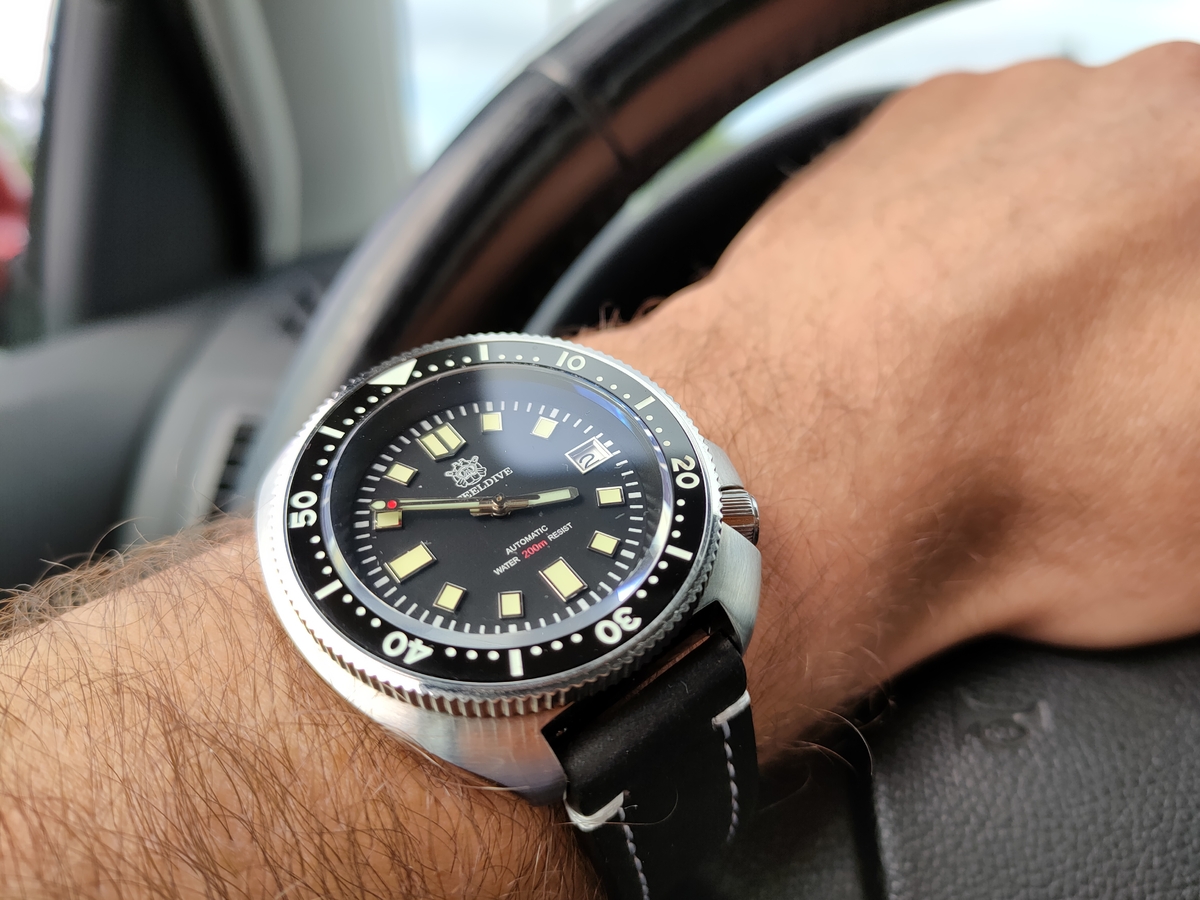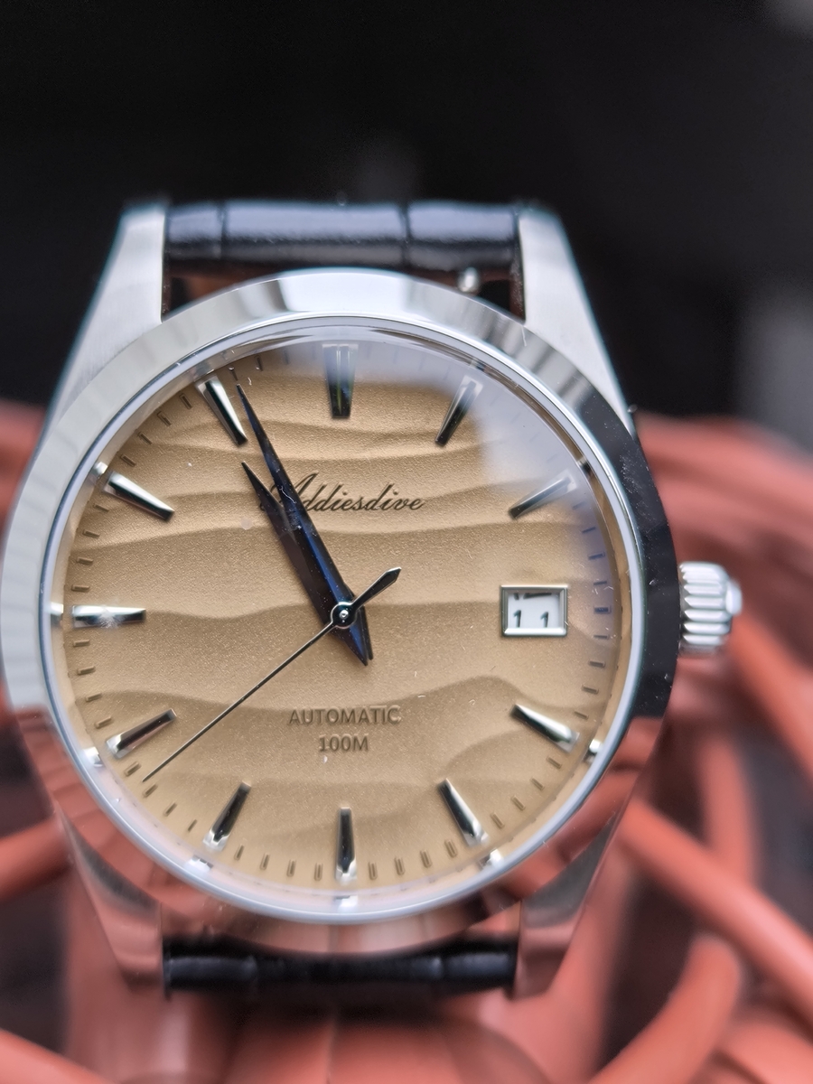 Mam ten zegarek.  Kupilem go za 85 Euro (Addiesdive podeslal link, kiedy go opublikowali na stronie).  To jest...hmmm...dziwactwo. Bo tak: zakrecana koronka, jak u divera, ale tarcza i indeksy jak conajmniej u garniturowca.  Wskazowki bez lumy, co eliminuje "diverowatosc", ale za to 100 m WR. (po co zegarkowi do garnituru 100 m WR?? Bedziemy sie w nim kapac?)?  Jest to ni pies, ni wydra.  Mam wrazenie, ze chlopaki z Addiesdive dostali do zabawy czesci od najrozniejszych modeli i zaczeli jazde bez trzymanki, nie mogac sie zdecydowac, CO wlasciwie chca poskladac.  Poniewaz zakupilem wczesniej model z "glacier" tarcza z na pasku, zorbilem predka podmiane i teraz mam tego "piaskowego' na czarnym pasku a ten "blekitny" lezy w pudelku, bo bransoleta od paiskowego ma POTWORNIE ciezko wylazace piny, wiec musze do zegarmistrza, bo moje domowe narzedzia nie daja rady.   Moze uda mi sie przeslac zdjecia jutro, jak zona sie wyspi ;)