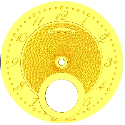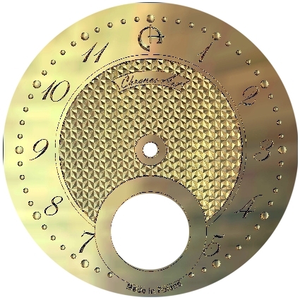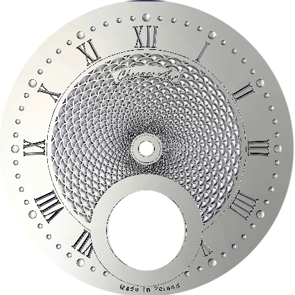 Z tych przykładów zdecydowanie bradziej podoba mi się umieszczenie napisu Chronos Art bliżej górnej krawędzi niż bardziej w kierunku środka tarczy. Czy indeksy w formie kropek będą wypukłe czy wklęsłe, ew. płaskie narukowane?. Płaskie i wklęsłe kropki nie wydają mi się tak fajne i może lepiej zamienić je na kreseczki albo cienkie prostokąciki.. Za to wypukłe, np. jak w Dukatach z Błonia są świetne.