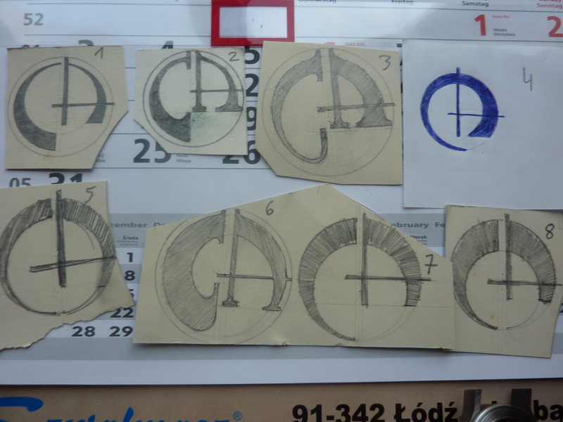 Jesli mogę zacząć, to z pewnością najlepszy jest czysty, techniczny projekt z nr 5,7 czy 8 z dolnej fotografii. Bardziej wersja o cieńszych liniach, a więc prędzej 7 niż 8. Nadaje się do różnych stylów, w przyszłych, różnych modelach. Całość ma przywodzić na myśl tarczę zegarka pokazującego godz. 15.00, a więc krótsze końcówki "wskazówek" w literze A powinny być tej samej długości. Za to druga nożka A mogłaby zawijać się w dół, tak jakby domykając okręgłą tarczę. Do tego sama nazwa napisana na dole jakąś pasującą czcionką.. To tylko drobne propozycje poprawek, bo Twój pomysł świetny!!!