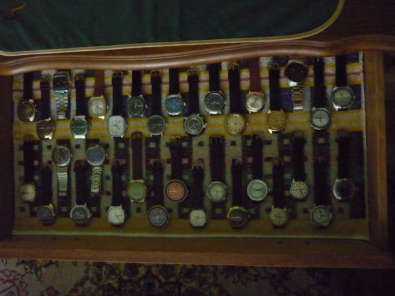 Oprócz tego mam jeszcze kilkadziesiąt zegarków, którym coś dolega, ale one na razie nie wyglądają zbyt apetycznie i czekają w kolejce na wizytę u zegarmistrza. Tak się akurat zdarzyło, że wśród tych niedomagających zegarków są te z najciekawszymi mechanizmami m. in. Wołny, Rodiny, Poljoty de lux automat, Poljoty 30 kamieni, Poljot 2209 de lux w stalowej kopercie.