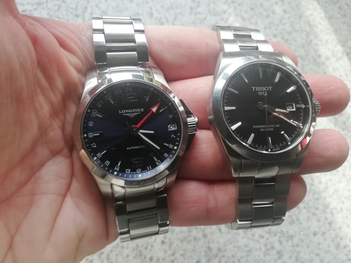 Na krótko wpadł Longines Conquest GMT i miałem możliwość szybkiego porównania z moim Gentlemanem.