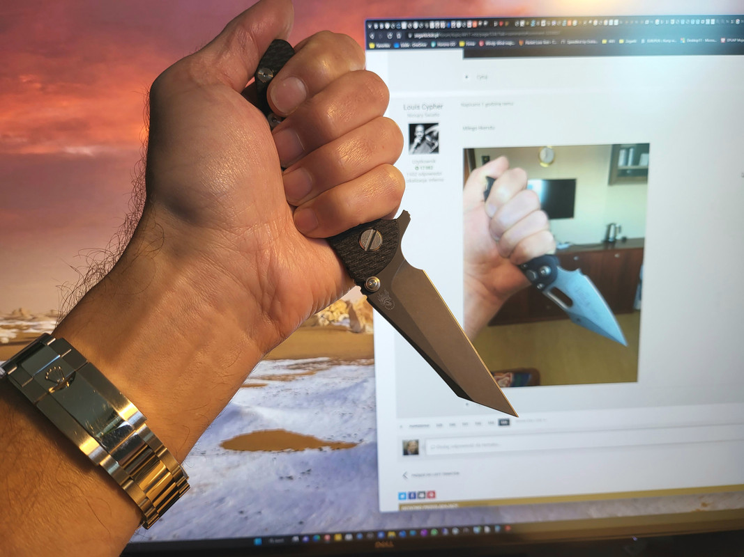 loco50 20469 #13339 Napisano 30 Grudnia 2022 (edytowane) No dobra. To po taniości. 223 ,50 po upuście. Najbardziej budżetowa firma córka WE - Sencut. Nożyk kupiony z ciekawości na zasadzie: co to? kto to? Sencut Actium. 88 mm, 110 g, D2, G10. Klinga czarna satynowa, z długą rampą pod kciuk i dużym choilem pozwalającym na pewny i wygodny chwyt "do przodu". Otwieranie za pomocą obustronnego kołka lub flippera bardzo łatwe dzięki łożyskom.Blokada to frame, miękka , lekko, chodząca . Mechanika przyzwoita, nie cudowna, ale przyzwoita.W tym przedziale cenowym jak najbardziej. Chwyt dobrze wyprofilowany, pewny, wygodny. Okladki to G10, przyjemne w dotyku. Klips do głębokiego noszenia, otwór do modnej zawieszki 😁. Na koniec - tani, przyzwoity, nie mały nożyk dla Kowalskiego. Ląduje w kieszeni do testów D2. Natomiast gdybym miał wybierać między nim a np Baklashem nawet w chromoniewiadomo to chyba jednak ten drugi by wygrał. Edytowane 30 Grudnia 2022 przez loco50 5 Udostępnij tę odpowiedź Odnośnik do odpowiedzi Udostępnij na innych stronach