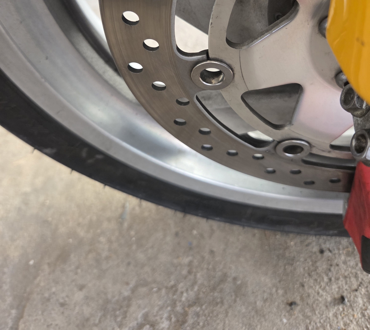 Tarcze są ładne i grube, nie mają rantu. Olej leciał z lewej lagi (niestety tak mocno ale kupiłem ze świadomością) i jest brudna. Juz nie leci...