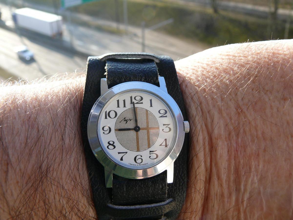 Kolejny dzionek z bliskowschodnim czasoupływaczem. Dziś białoruski Łuczyk, ot taki pospolity, na alle nikt nawet na to nie gapi siem. Mizernota. Ale na pasku z podkładką nabiera nowego wyglądu i życia i na takim pasku lubię go nosić a jako że do kaszanki nie wyjmuje się porcelany to i ten pasek taki hm, jakby to napisać, tańszy. Jednak ma wartość gdyż otrzymałem go z innym zegarkiem od forumowego kolegi i znalazłem dla niego odpowiedni zegarek.