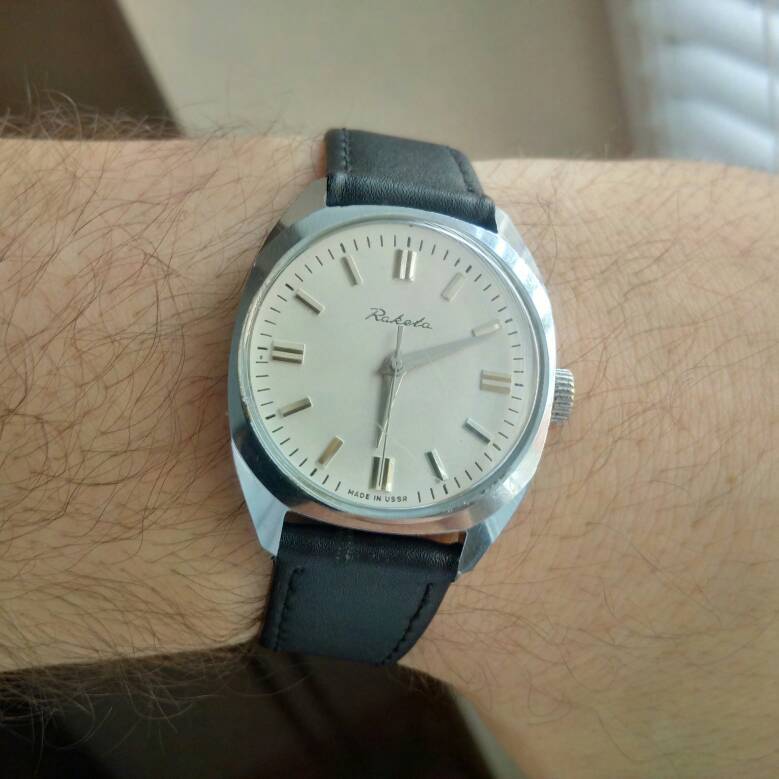 Ciekawy zegarek (ze względu na mechanizm i pochodzenie). Wg. mnie ma za cienkie wskazówki w stosunku do indeksów. Szkoda, że radzieccy projektanci/konstruktorzy nie pokusili się na kopertę ze stali.