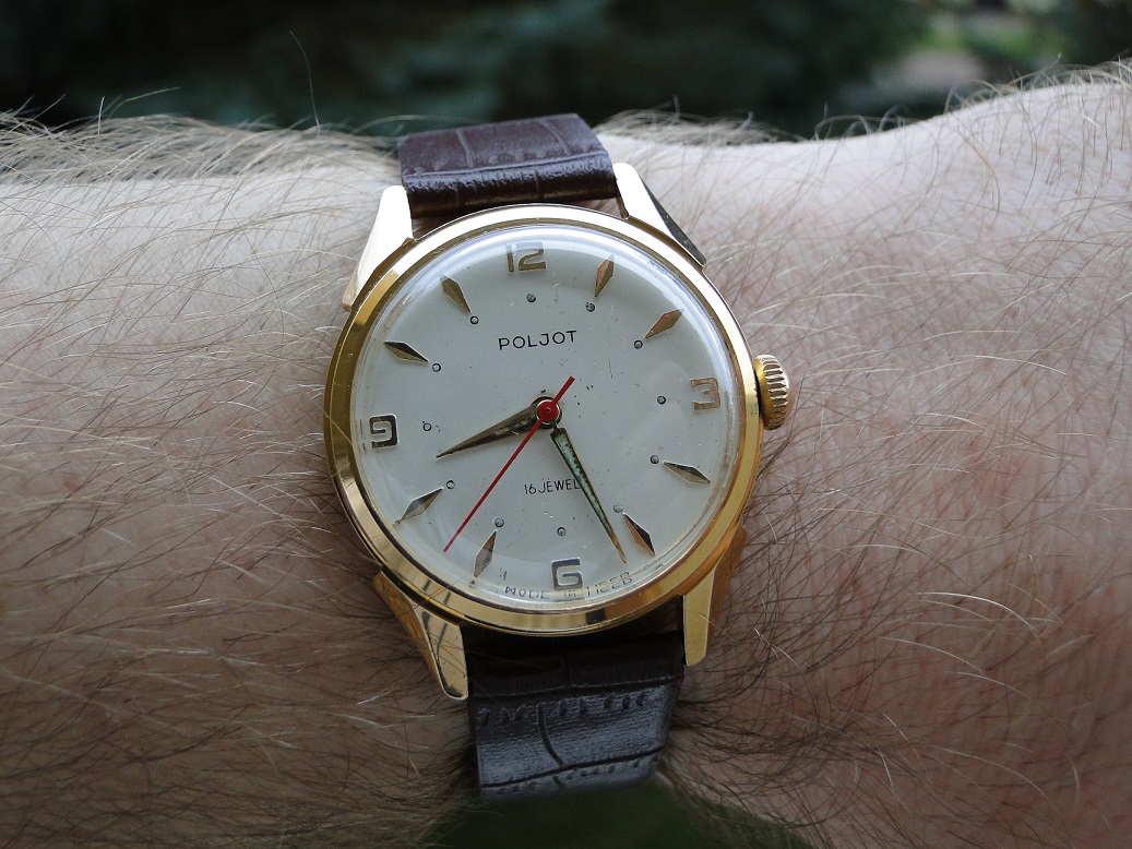 Jeden z rzadkich eksportowych Poljotów wypuszczonych w małej liczbie egzemplarzy gdzie zastosowano zachodnią kopertę. Mechanizm 16 kamieni taki jak w Moskwach. Dekiel opisany "Foreign". W podobnych kopertach wychodziły też stalowe z różnymi wzorami tarcz.