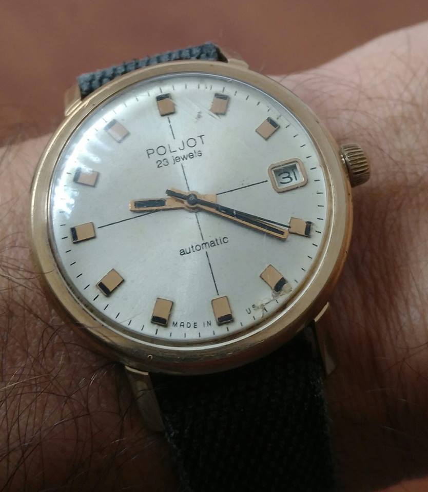 Dużo pięknych zegarków- Sława "niebieska kostka", Czajka w złocie, stalowy Poljot de luxe i ten ostatni wytworny Komandir ze śrubowatą tarczą bez bezela. Łączne gratulacje :)