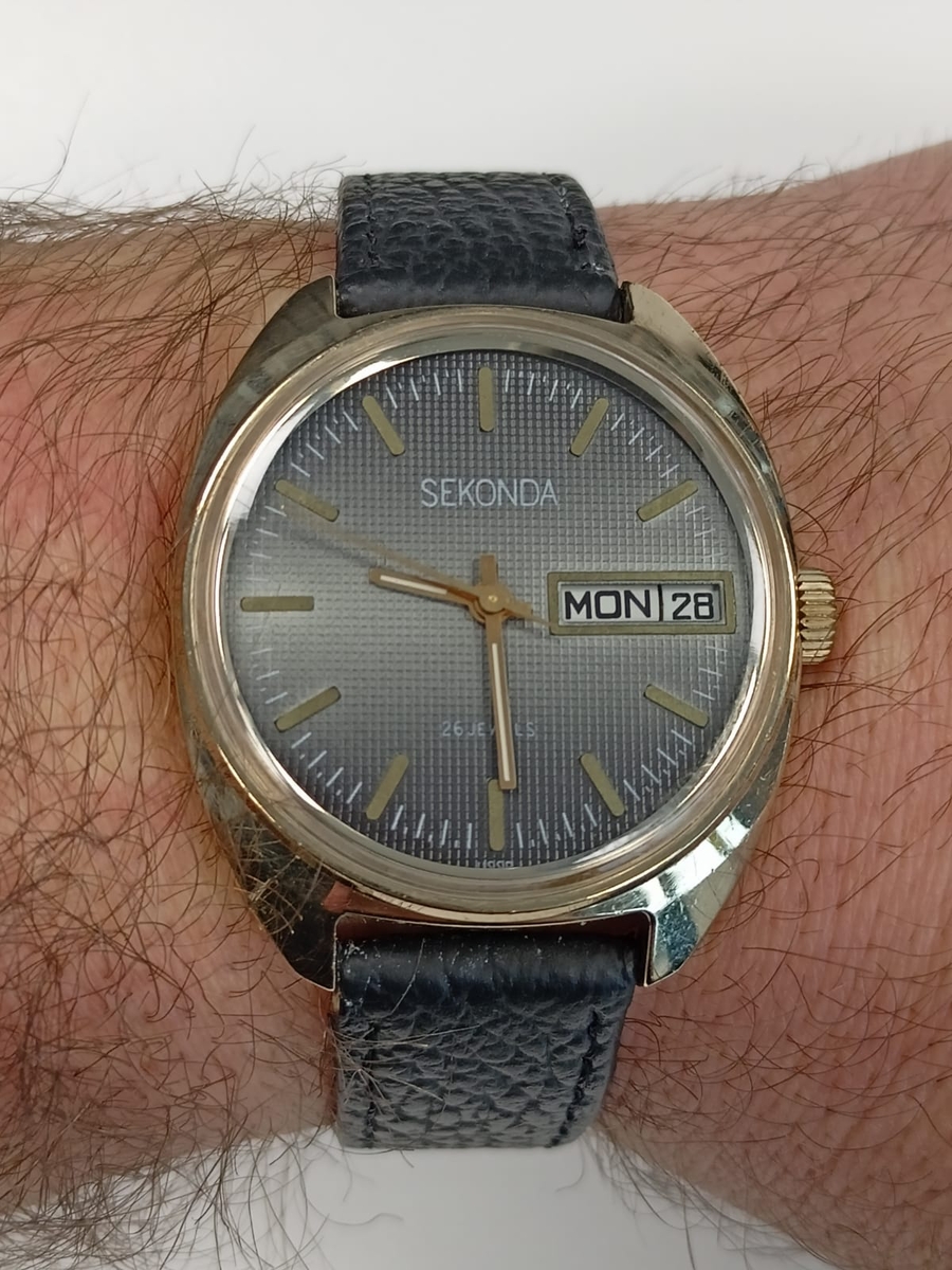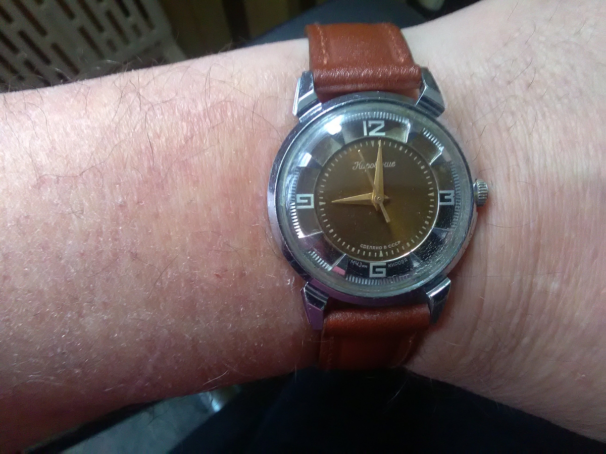 Zegarek znalazłem w szufladzie, sprzątając mieszkanie po Mamie. Nie miał szkiełka i miał złamane jedno ucho pozłacanej koperty. Zaniosłem do zegarmistrza, naprawił i przełożył do koperty, w której jest teraz, bo powiedział, że nie ma pozłacanej.